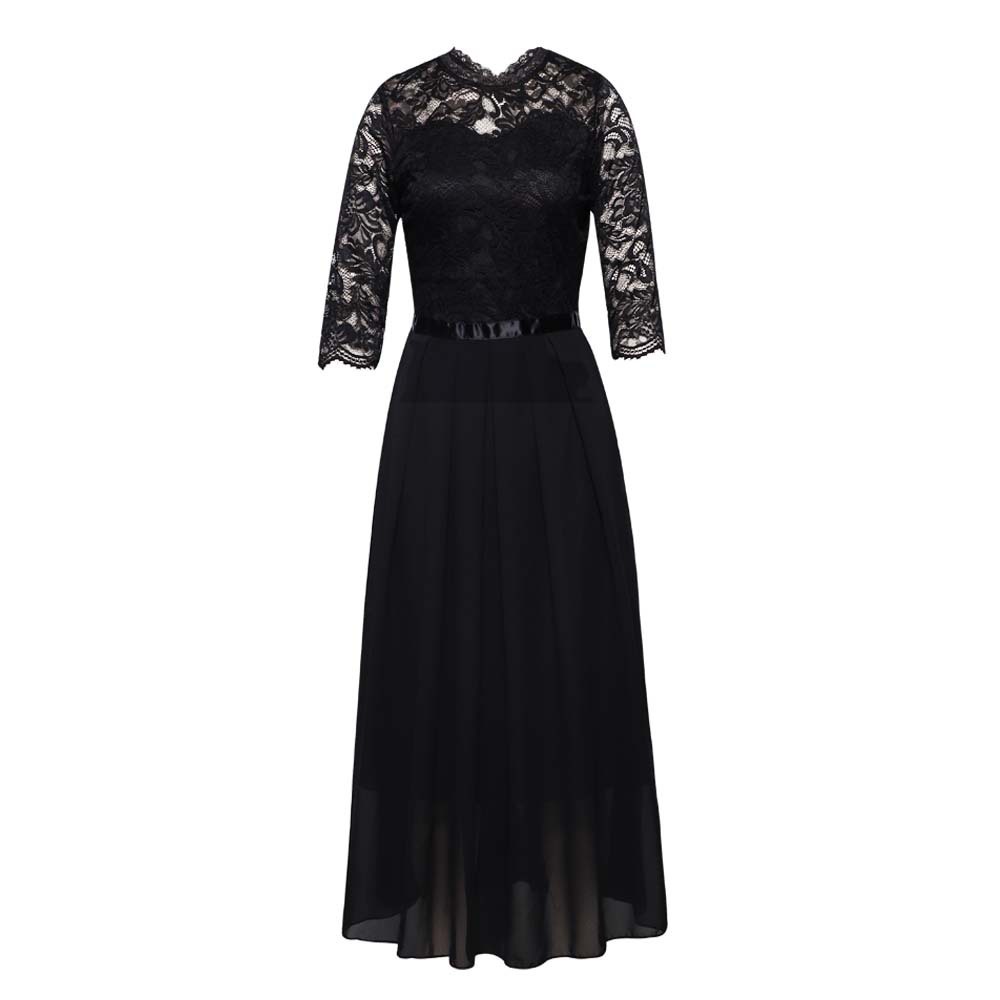Athvotar Athvotar Dress Station Splicing Chiffon Dress Round Collar Lace Dress Evening Dress Women's Dress