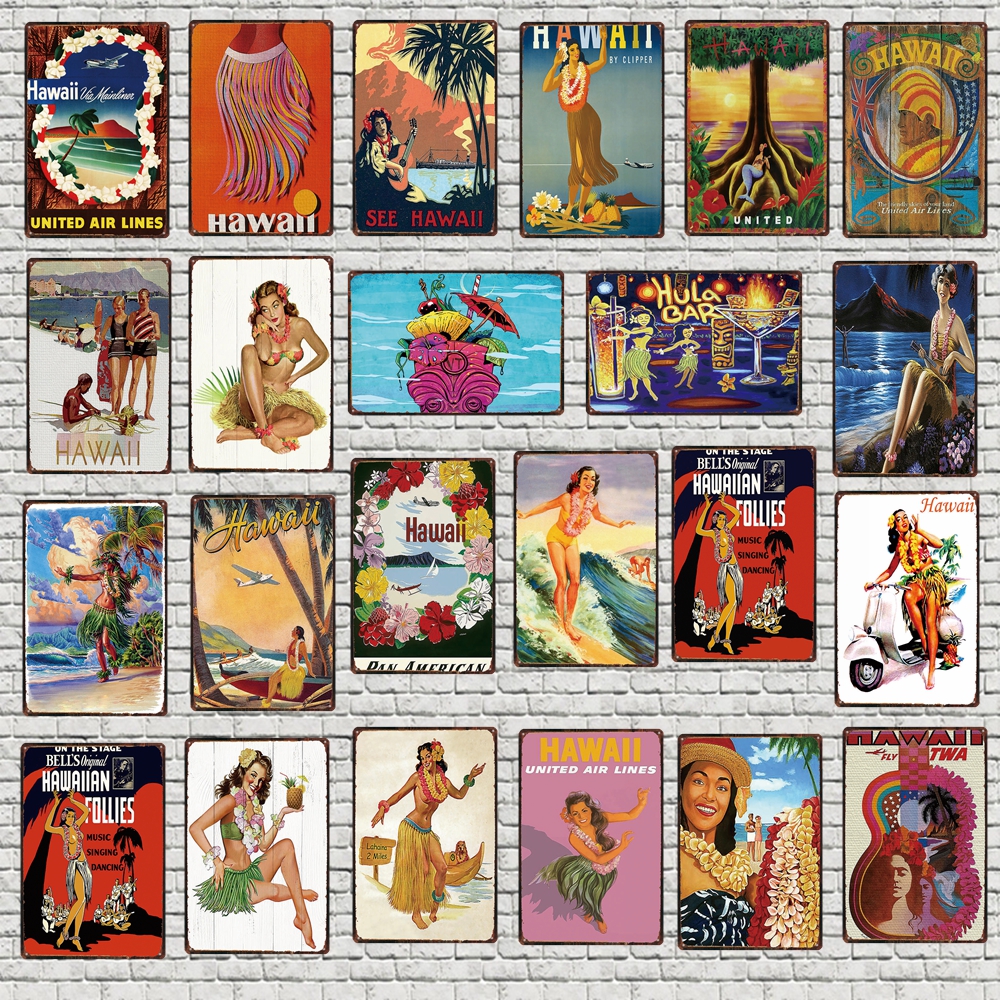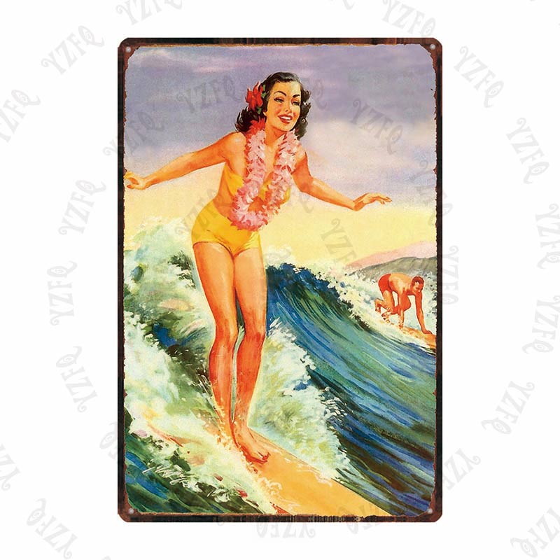 Athvotar Vintage Poster Surfing Beach Metal Sign Travel Souvenir Retro Wall Bar Art Home Cinema Decor Cuadros DU-5391A