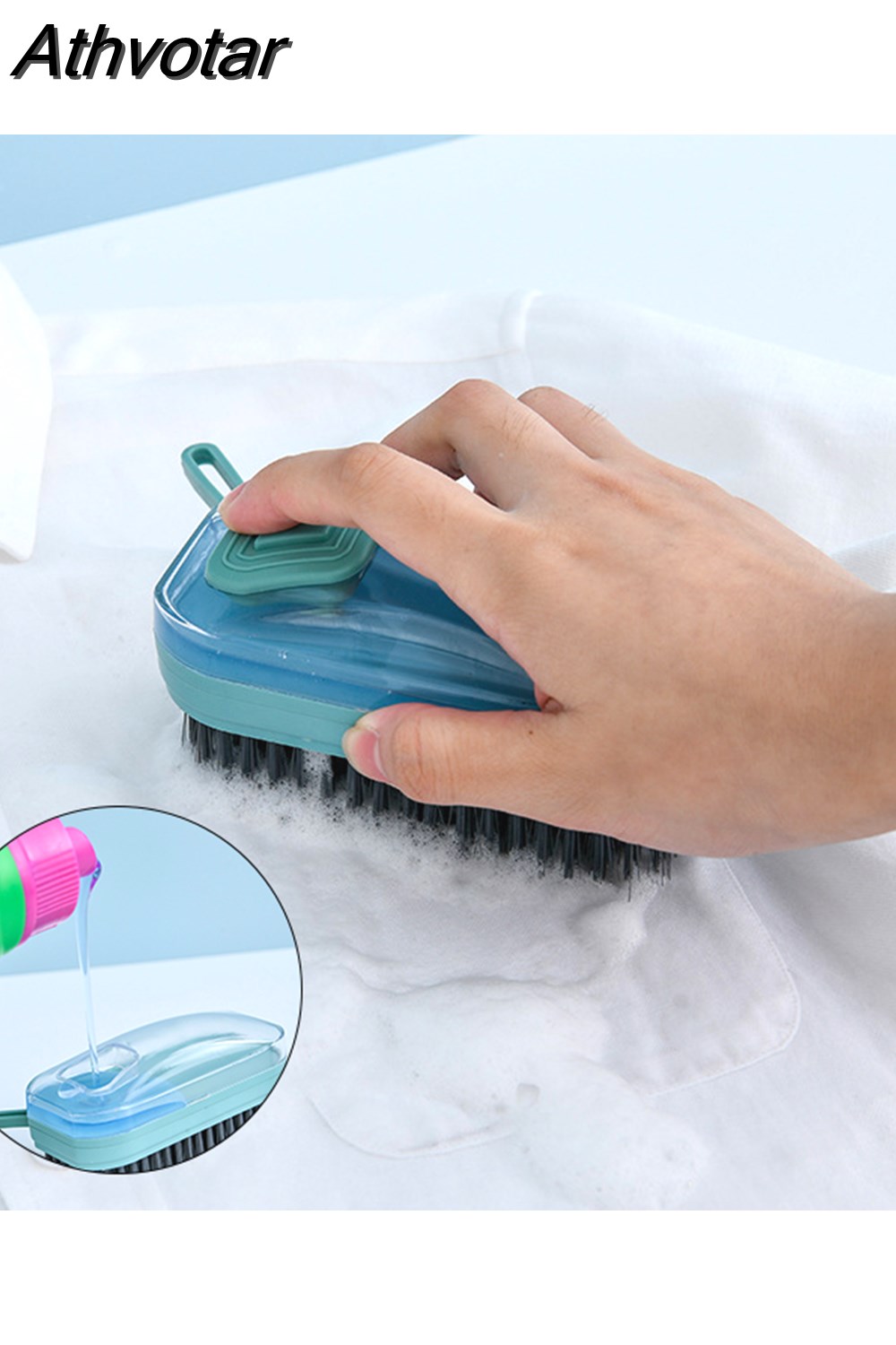 Athvotar Cleaning Brush Portable Plastic Clothes Shoes Laundry Brush Soap Dispenser Dishwashing Soft Brushes Cleaning Tools