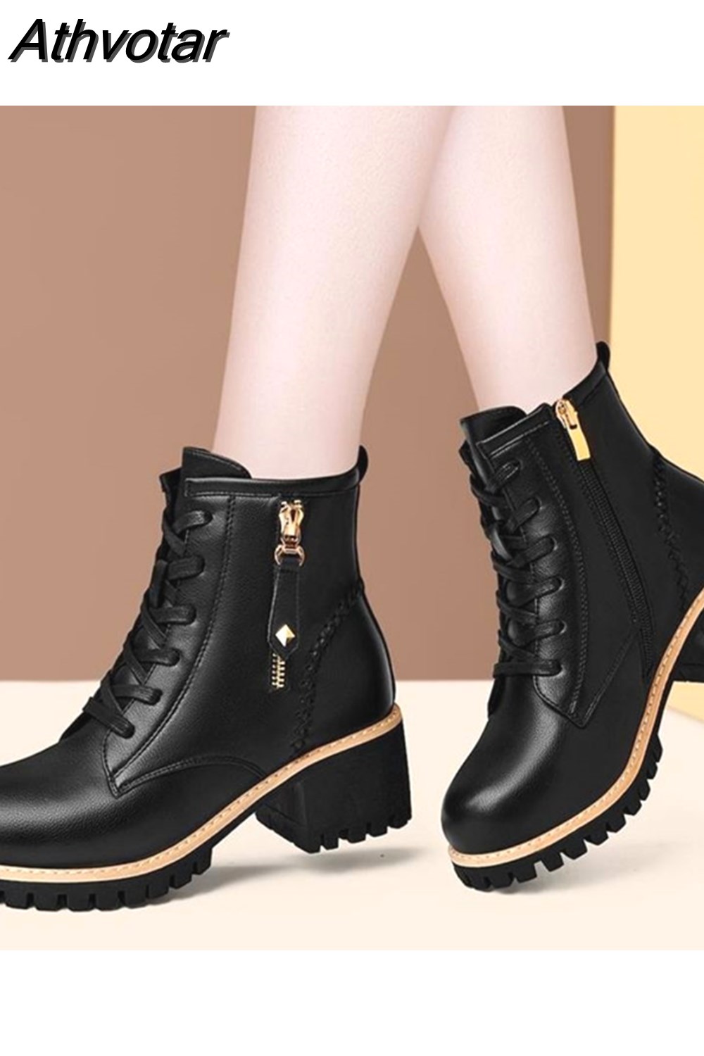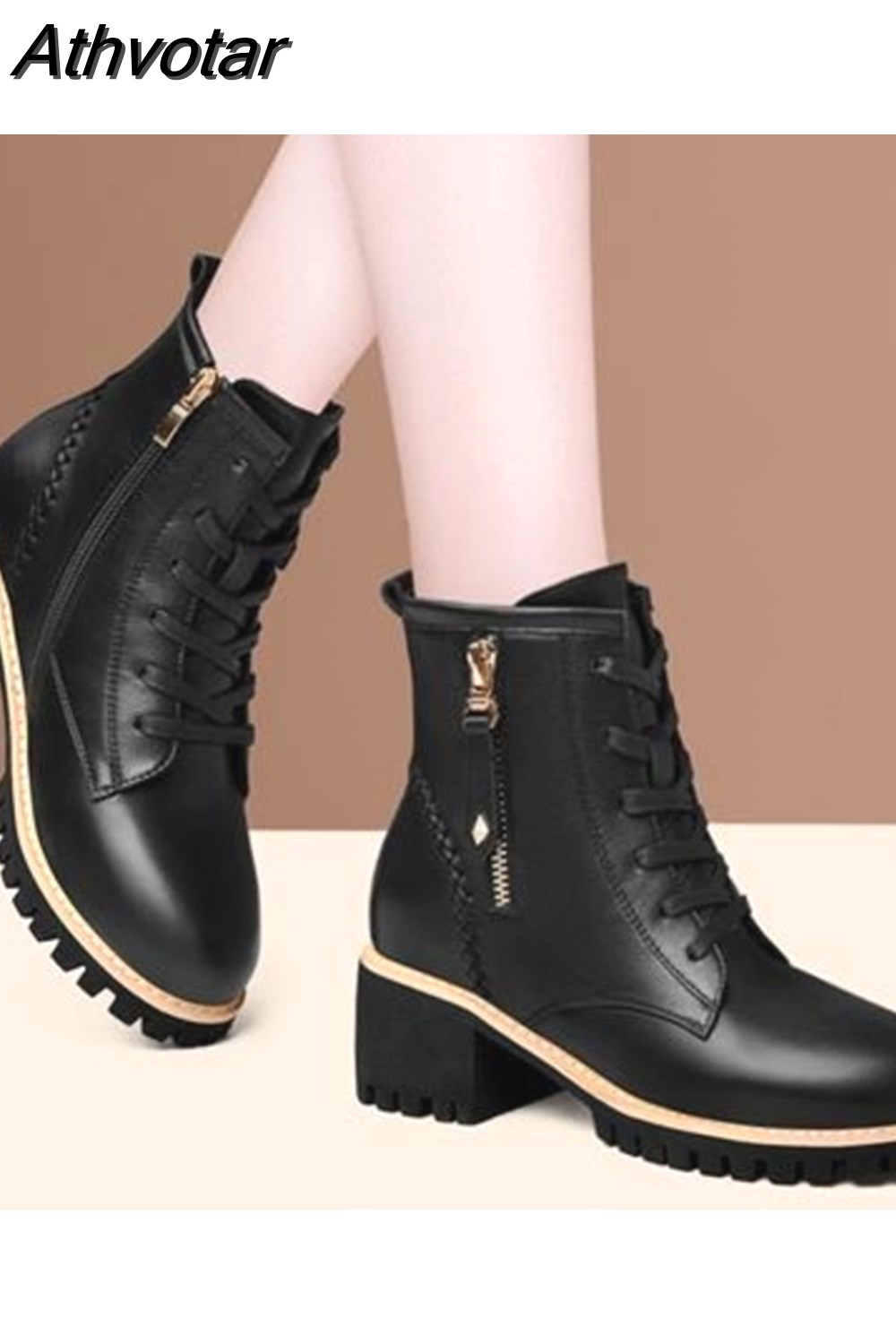 Athvotar Shoes Boots Ankle 2023 Autumn British Wind Genuine Leather Thick With Fur Ladies Short Boots Motorcycle Martin 1020-0