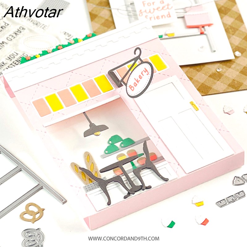 Athvotar New Pop-Up Shoppe Metal Cutting Dies and Clear Stamps Scrapbook Diary Secoration Embossing Template Diy Greeting Card