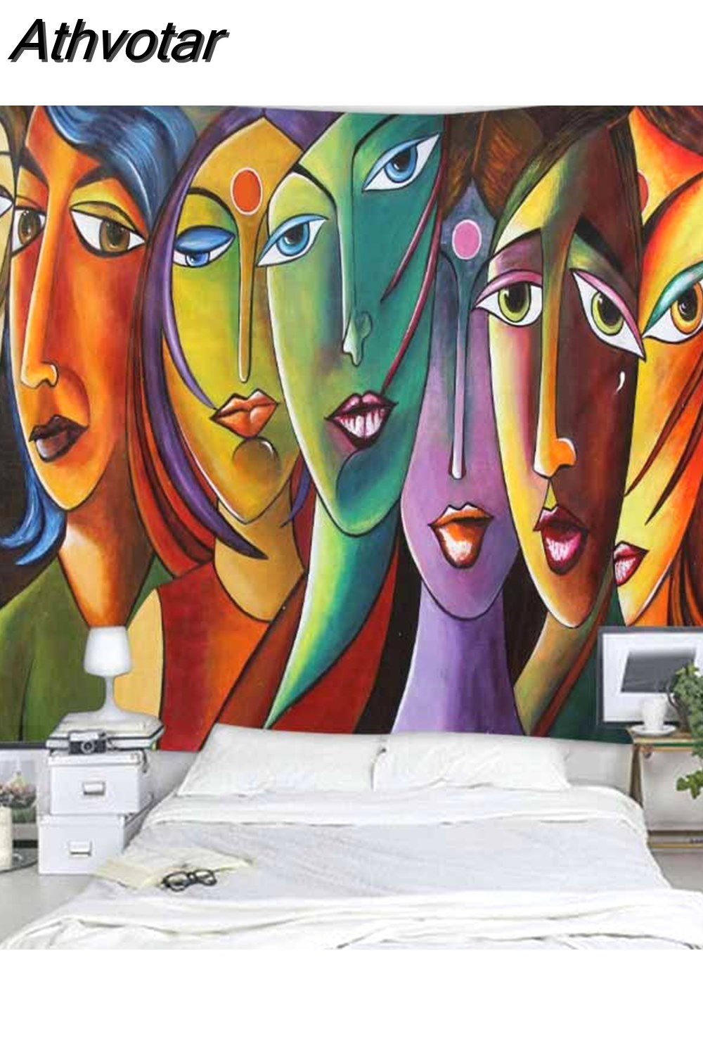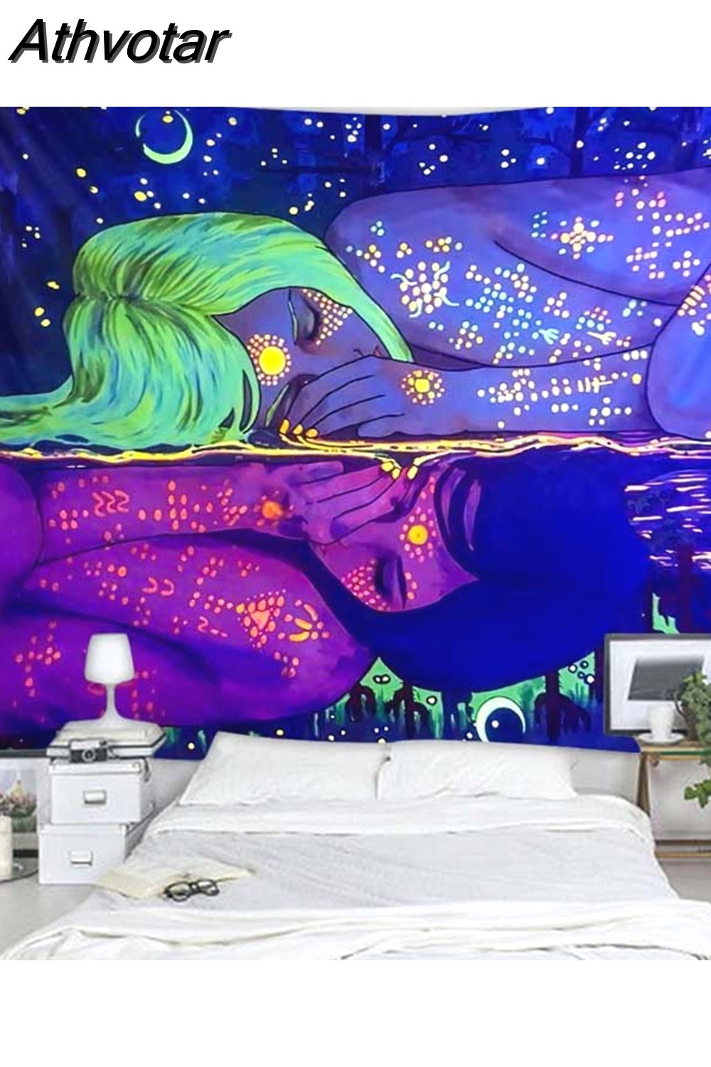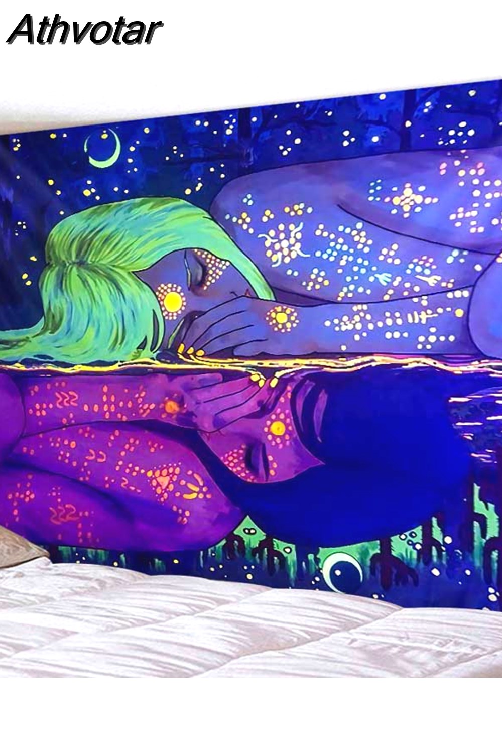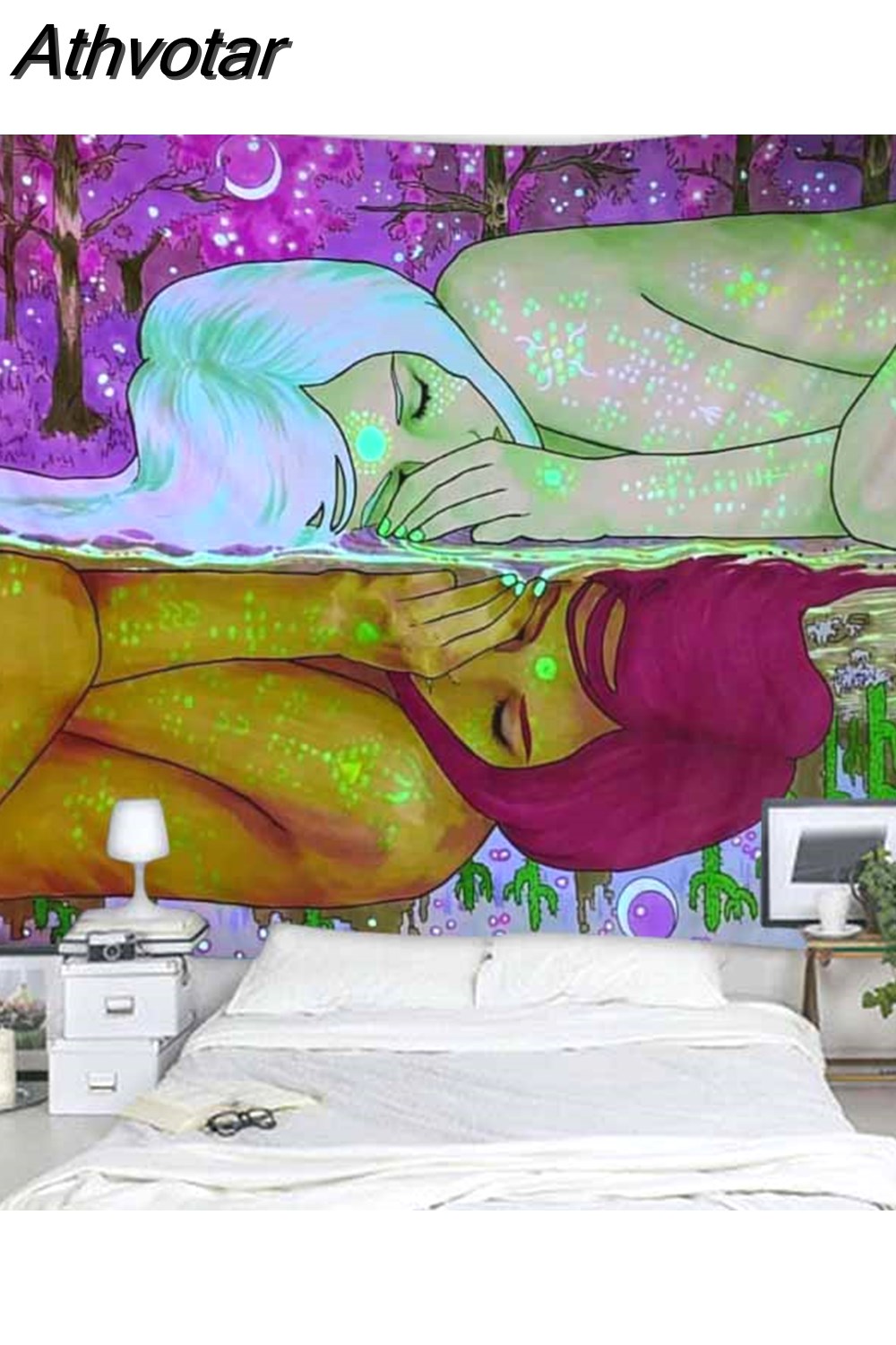 Athvotar Illustration Wall Hanging Tapestry Hippie Kawaii Home Wall Decor Boho Room Personality Background Cloth Sofa Sheets 1020-0