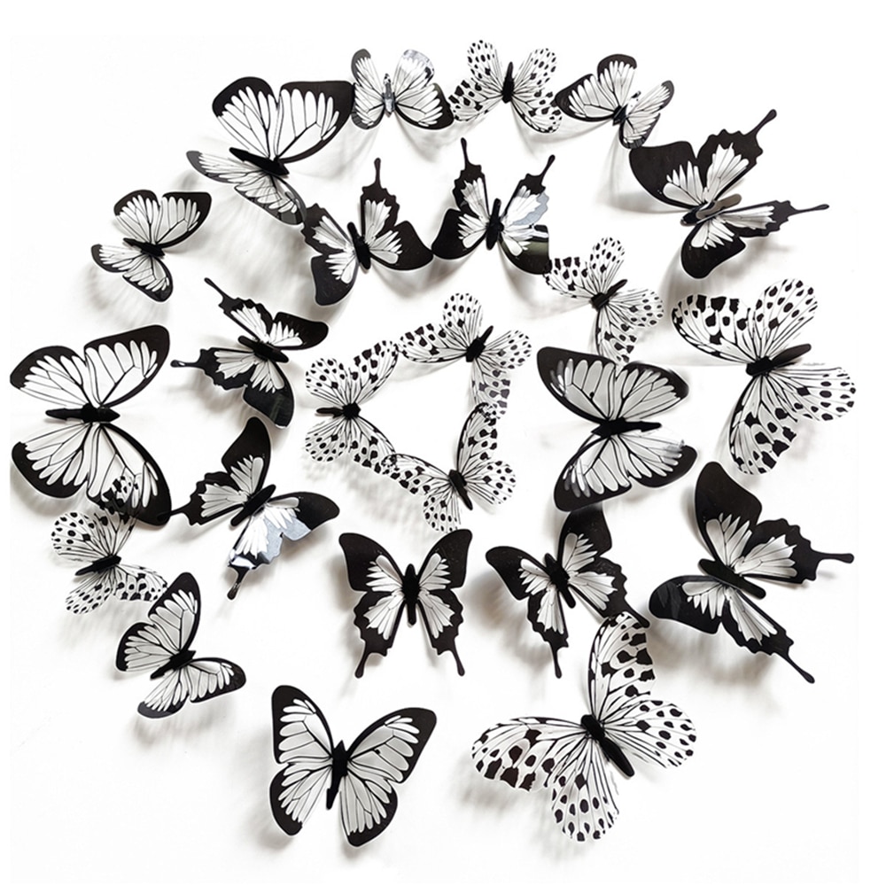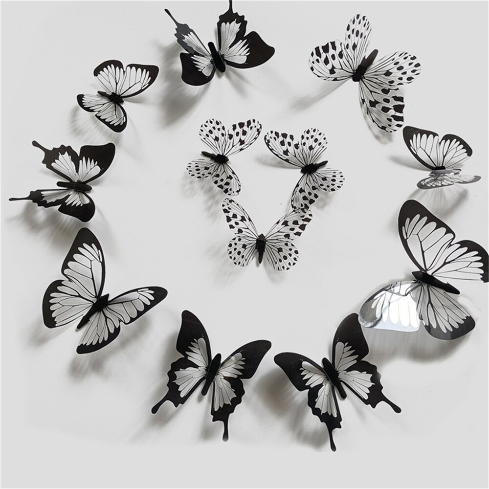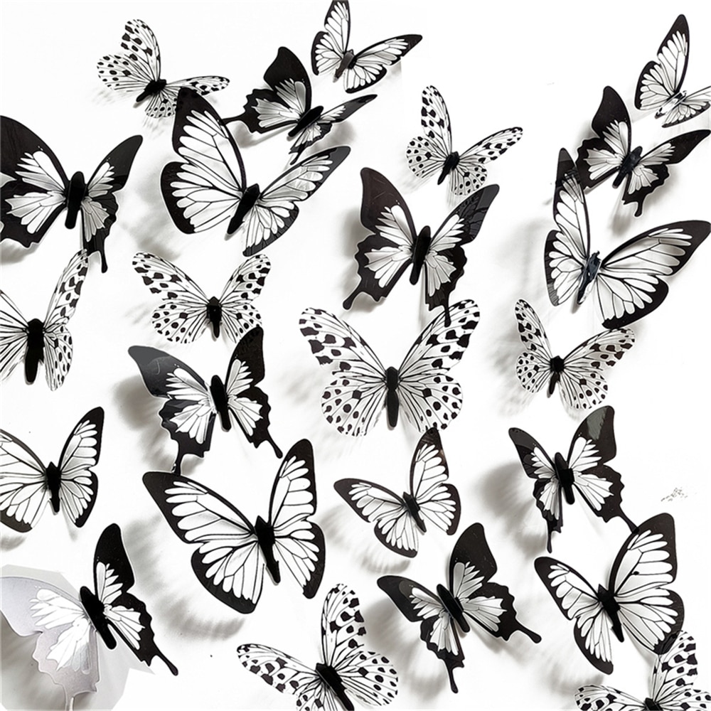 Athvotar Pcs Black White 3D Butterfly Wall Sticker Wedding Decoration Bedroom Living Room Home Decor Butterflies Decals Stickers