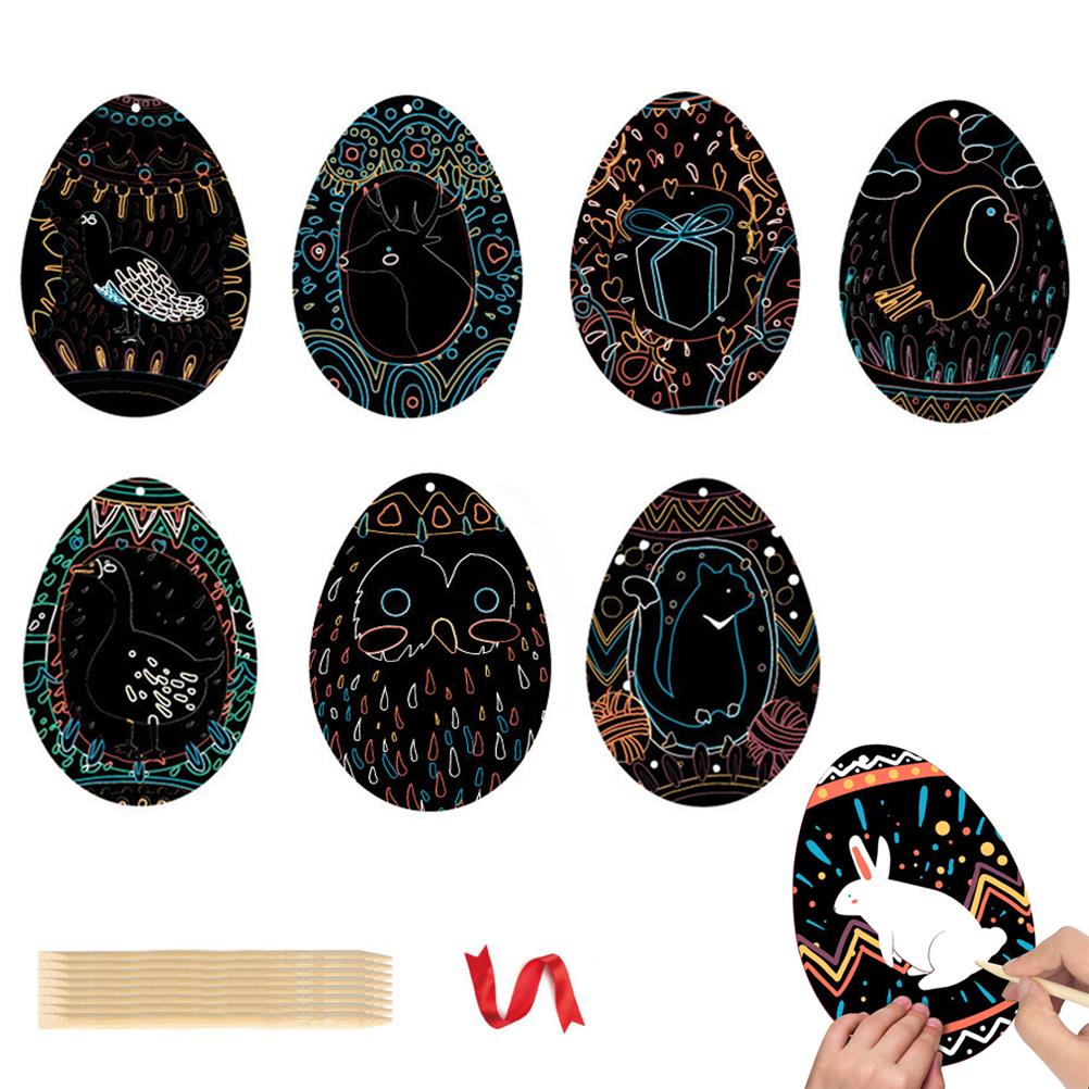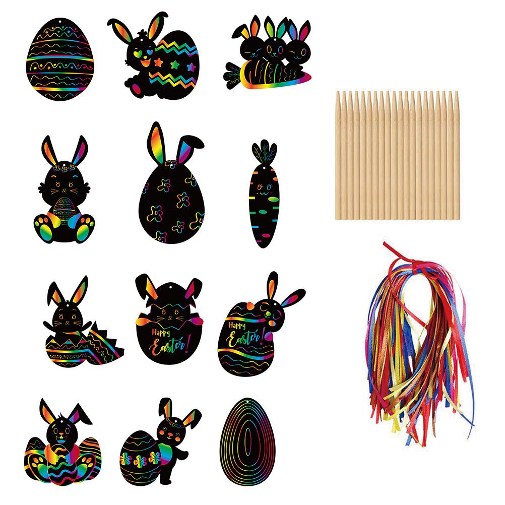 108PCS/SET DIY Rainbow Easter Egg Rabbit Carrot Chick Scratch Art Ornaments With Scratching Pens For Kids Hunt Gift Bag Favors