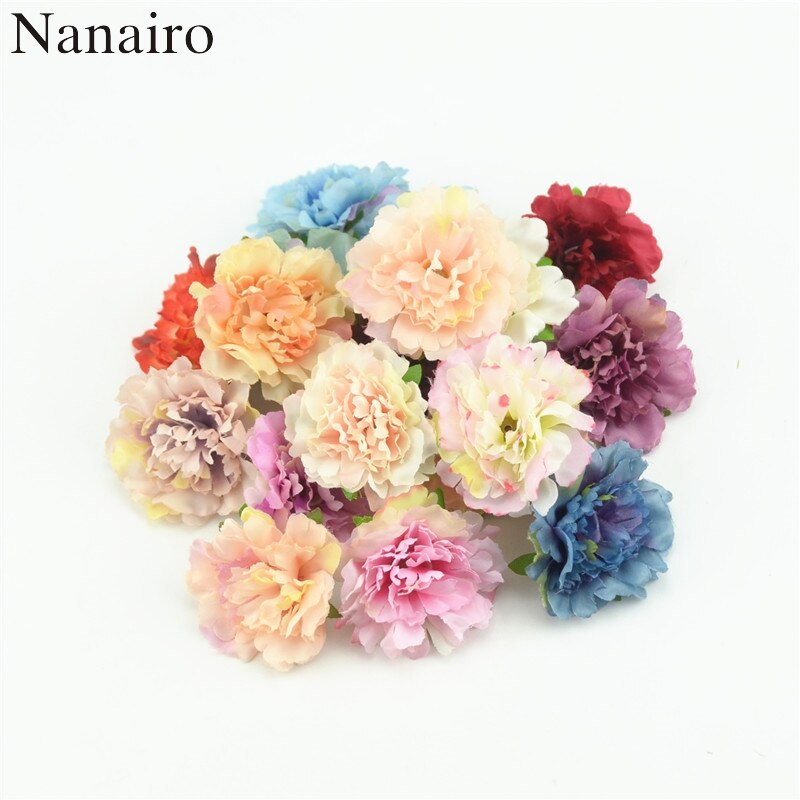 10pcs Cheap 4.5cm Mini Artificial Silk Flower Heads European Fall Vivid Peony For Wedding Home Decoration Chrismas Gift Crafts