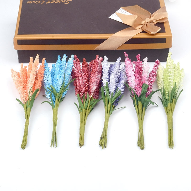 10pcs Cheap Artificial Mini Lavender Foam Flower Bouquet For Wedding Flower Decoration Scrapbooking DIY Wreath Fake Rose Flowers