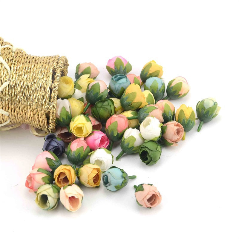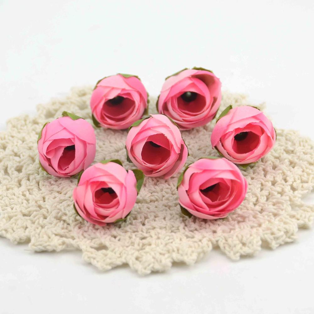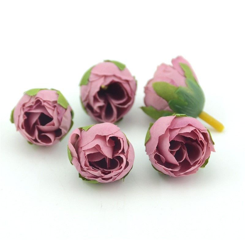 10pcs Cheap Mini Real Touch Silk Artificial Rose Flower Head Camellia Buds Wedding Home Decoration Wreaths Craft Fake Flowers