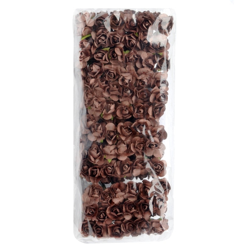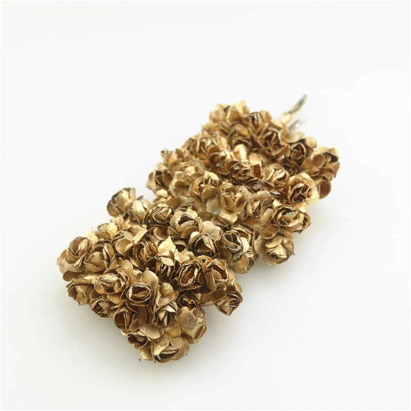 12/72/144pcs Fake Mini Artificial Paper Rose Flower Bouquet For  Wedding Decoration Handicraft DIY Scrapbooking Wreath Craft