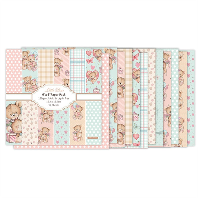 12pc petit ours patterned paper Scrapbooking paper pack handmade craft paper craft Background pad