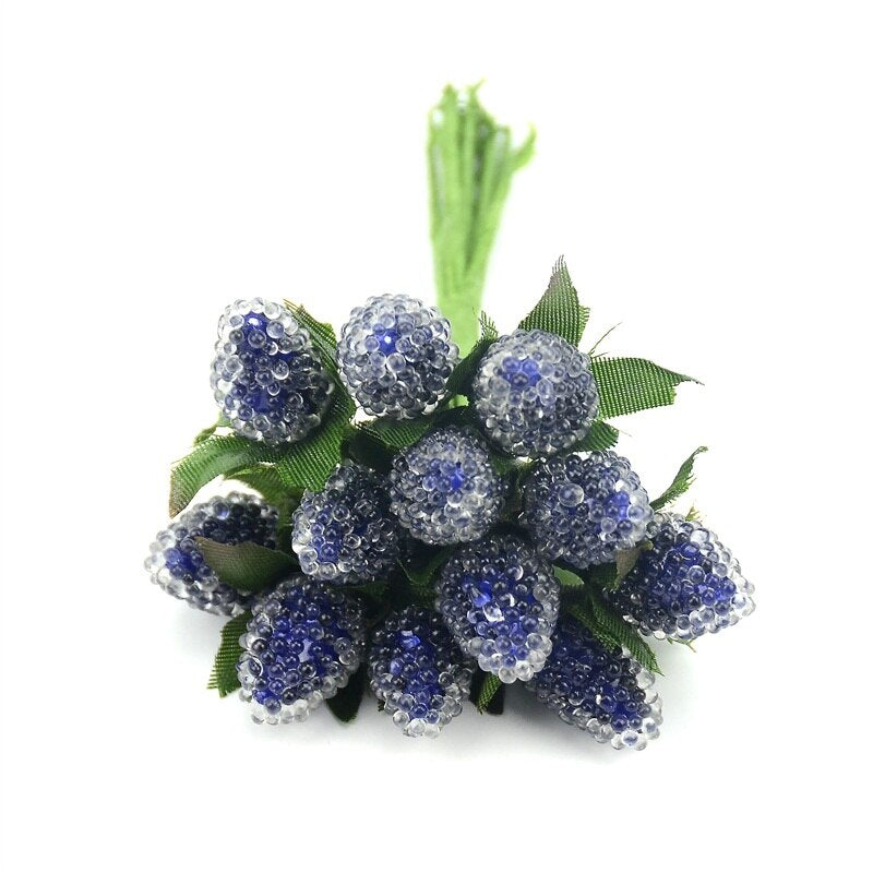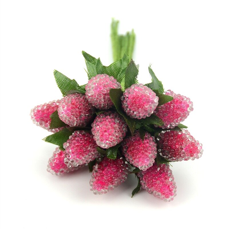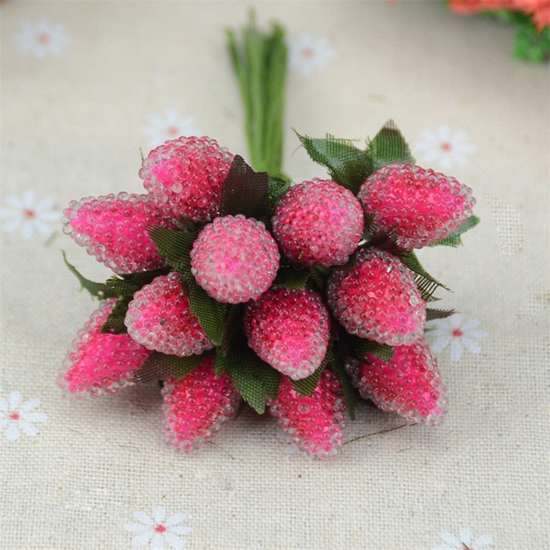 12pcs Artificial Fruit Stamen Glass Berries For Wedding Christmas Decoration Simulation Fake Strawberry DIY Scrapbooking Crafts