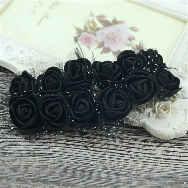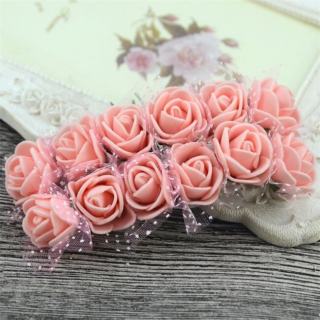 144PCS 2CM Mini Artificial Flower Bubble Rose Bouquet Wedding Home Party Decoration Craft Garland Accessories Fake Flower