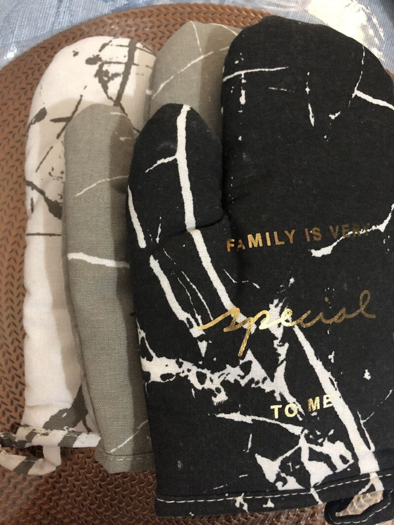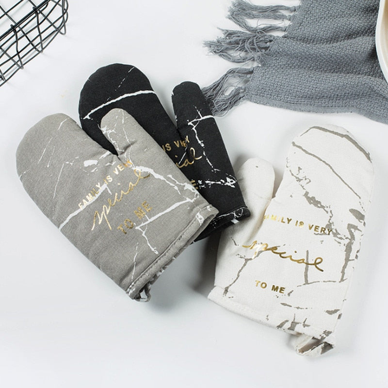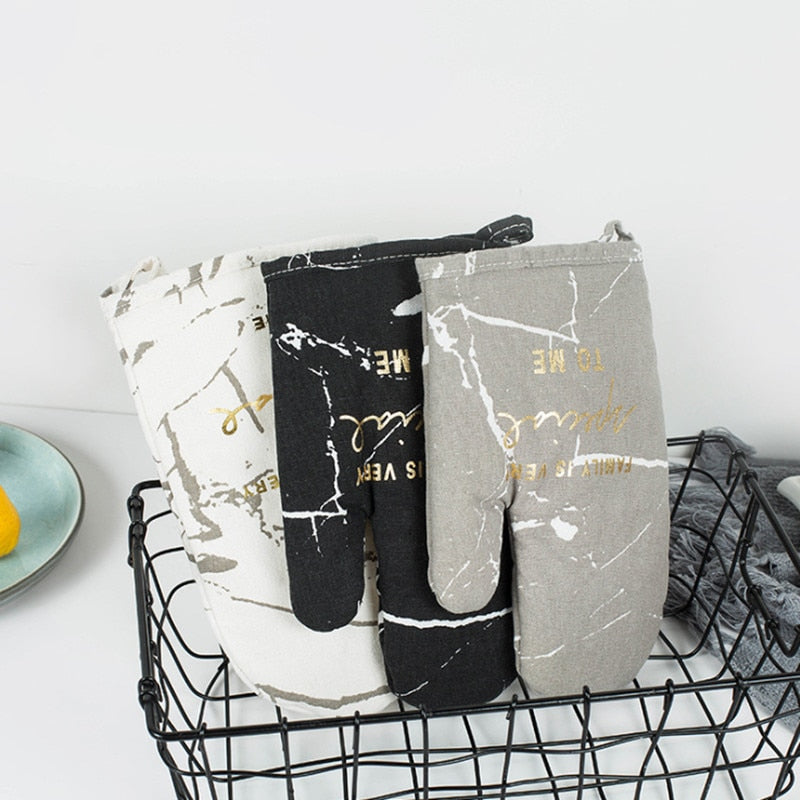 1pc Cotton Microwave Oven Gloves Kitchen Cooking Microwave Oven Mitts Marble Pattern Heatproof Non-Slip Potholders Baking Gloves
