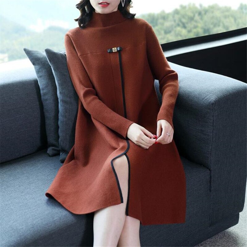 2021 Pullover Autumn And Winter New Korean Women's Long Section Lazy Wind Lady Loose Long-sleeved Sweater Dress