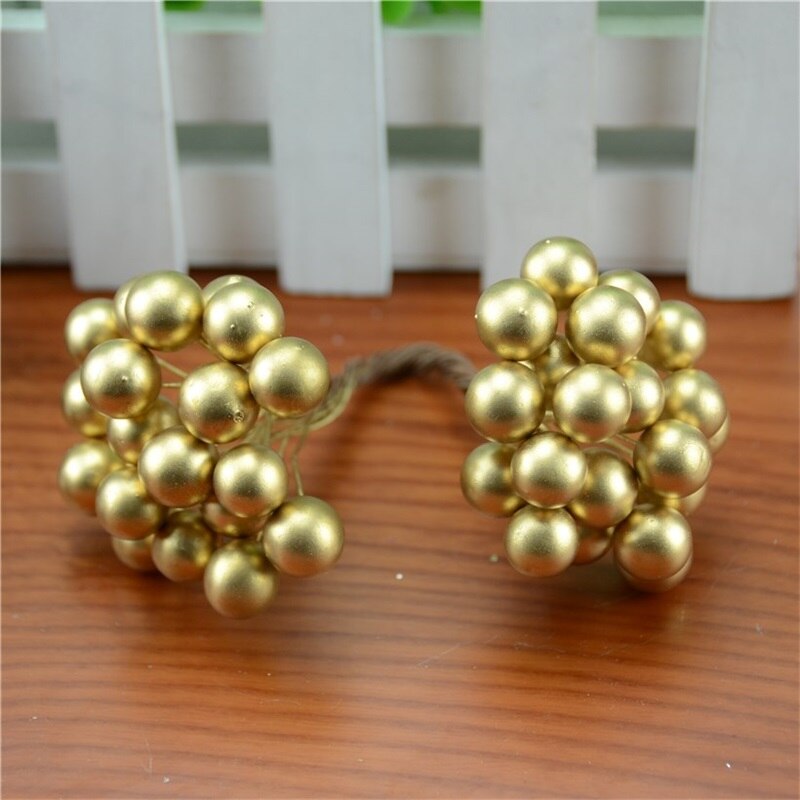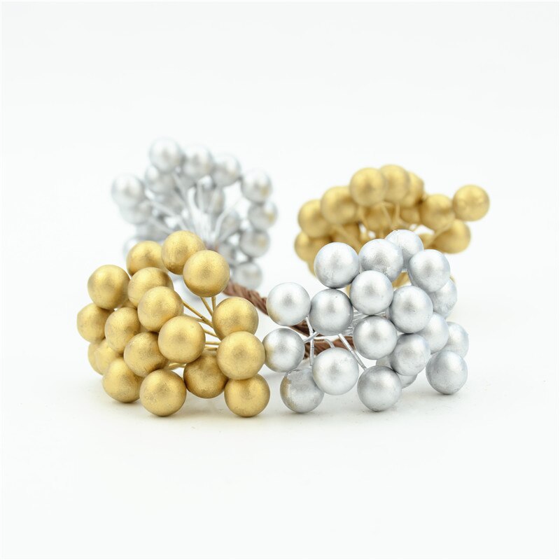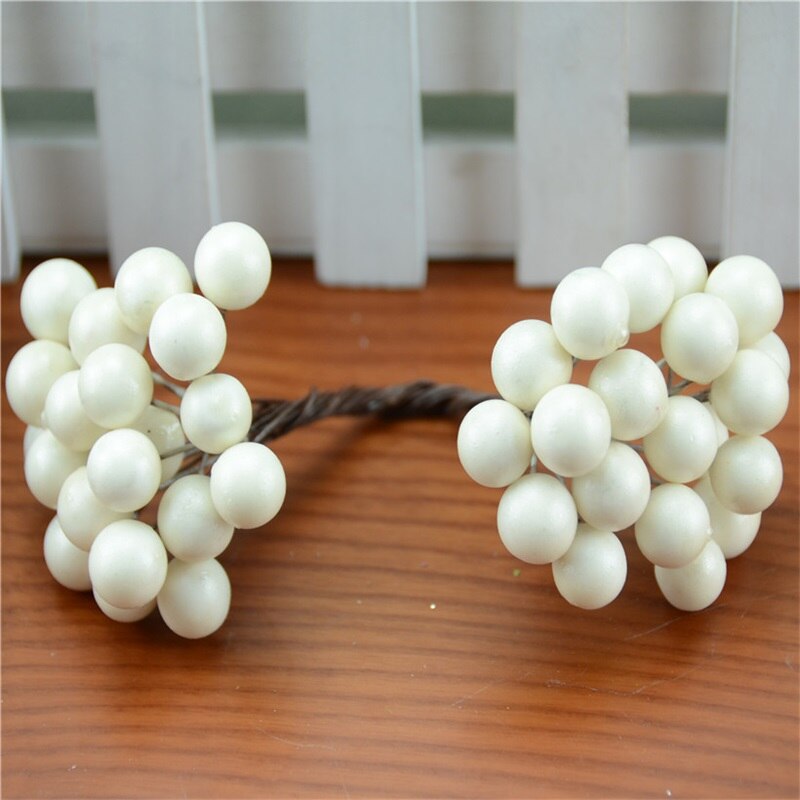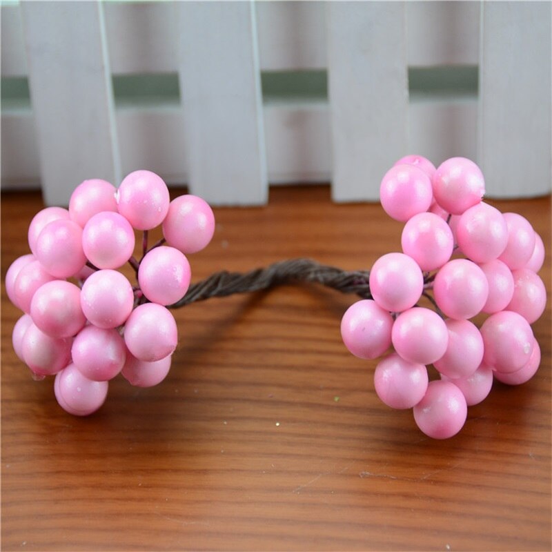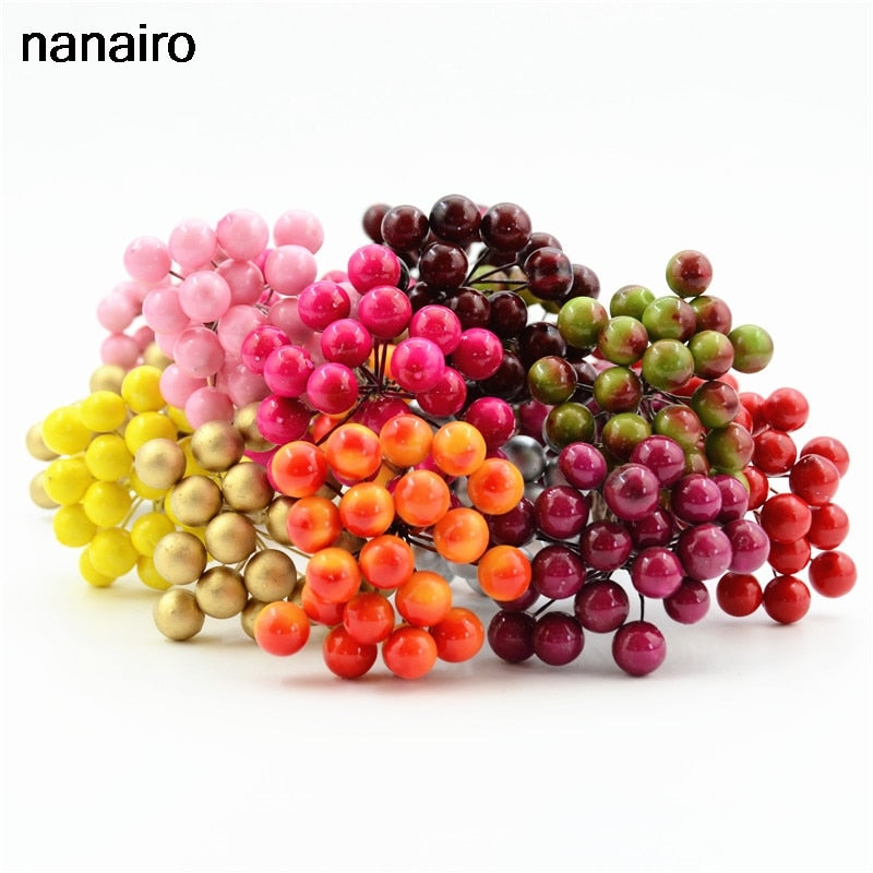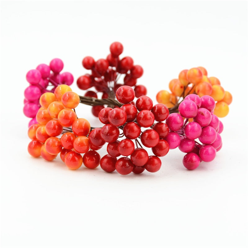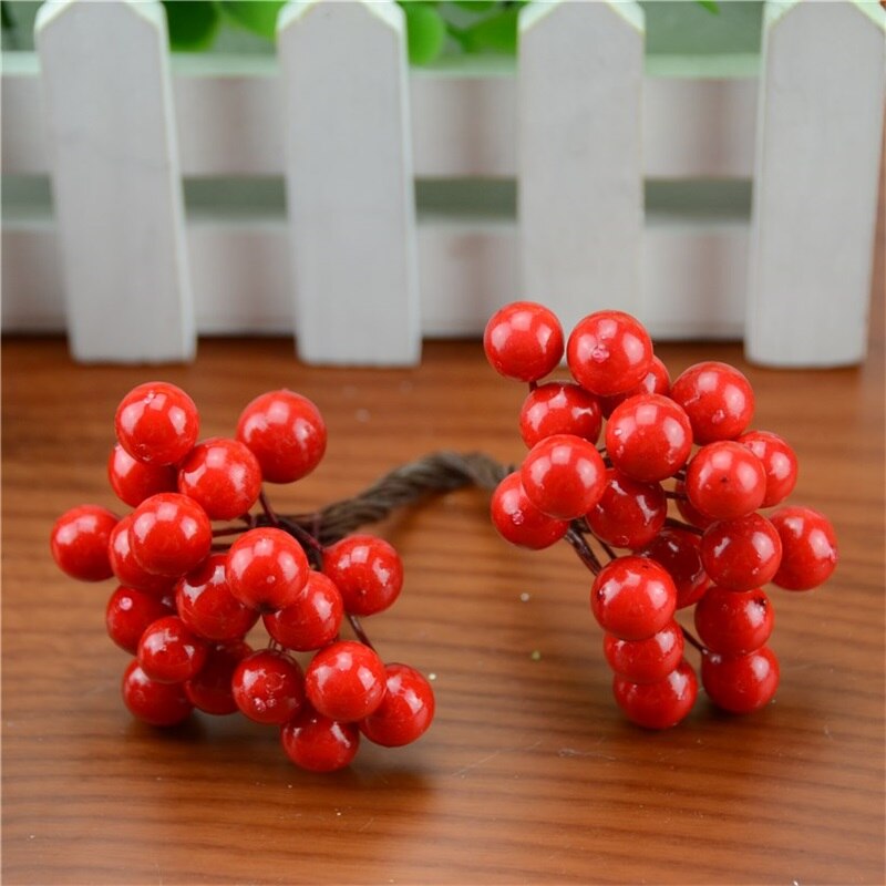 20pcs/40head Pearl Double Head Berries Mini Fake Fruit Berries Artificial Red Cherry Flower Bouquet Stamen Christmas Decorative