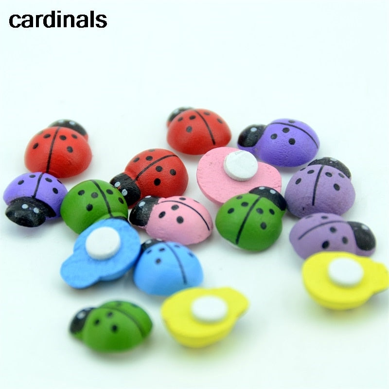 20Pcs Fashion Beatles Wooden Ladybird Wall Sticker Children Kids Painted  DIY Craft Wedding Home Party Holiday Decoration