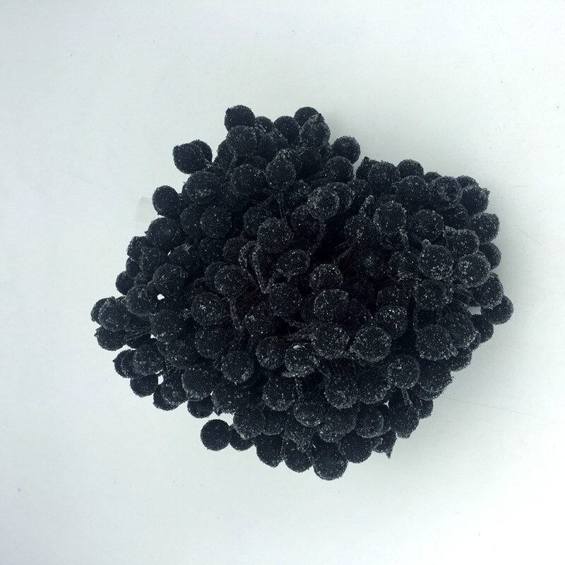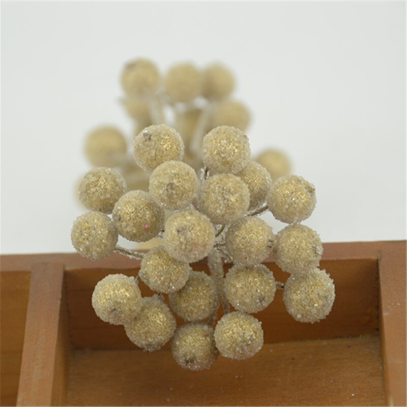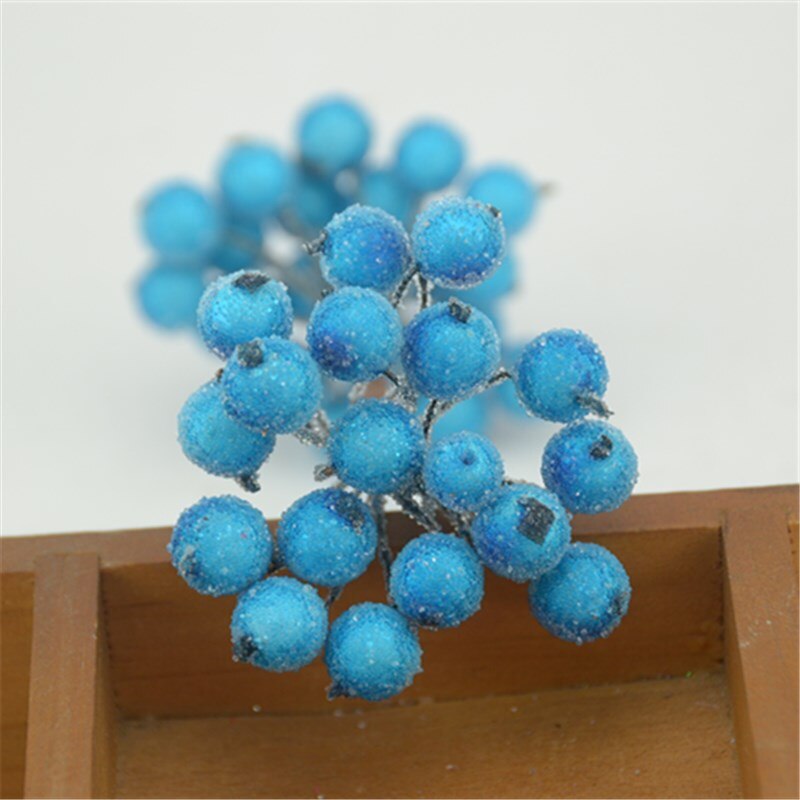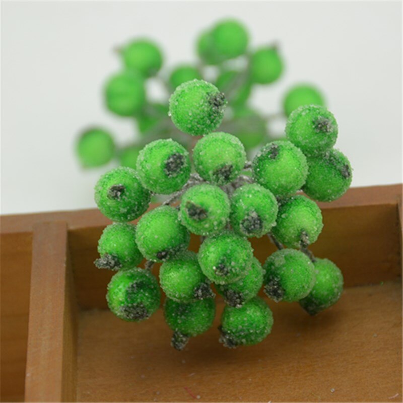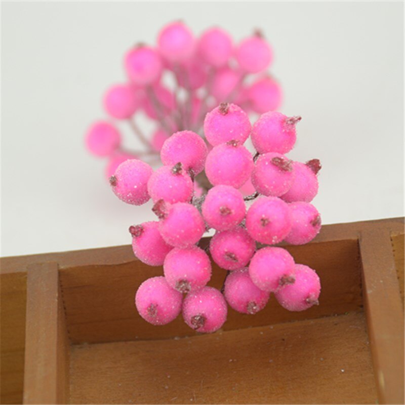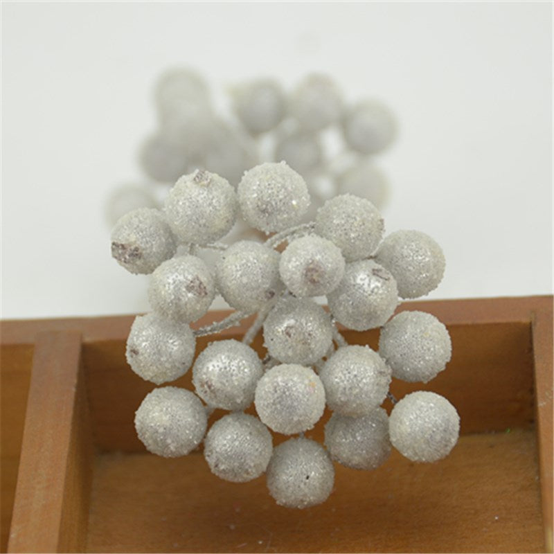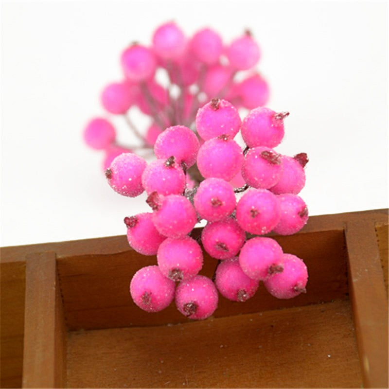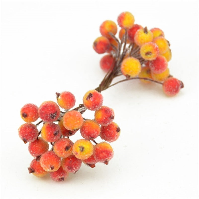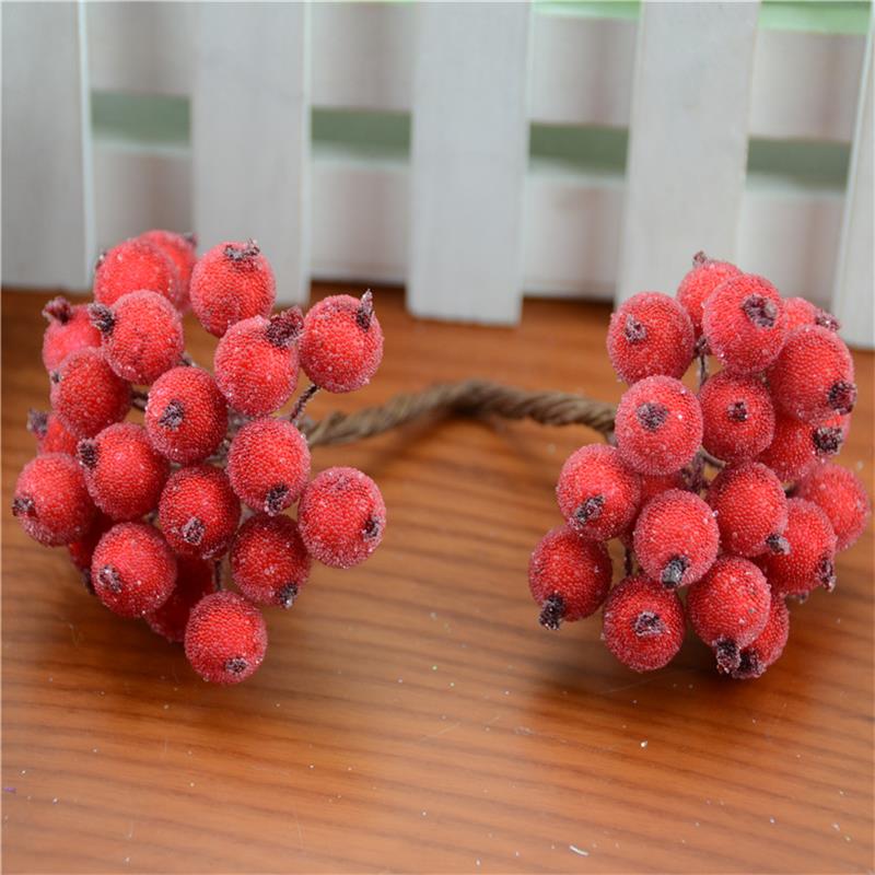 20pcs Mini Double Heads Artificial Glass Berries Pomegranate Red Cherry Bouquet Stamen Christmas Decorative DIY Craft Fake Fruit