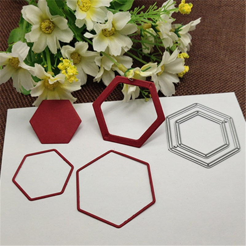 2Pcs Hexagonal frame Metal Cutting Dies Stencils For DIY Scrapbooking Decorative Embossing Handcraft Die Cutting Template