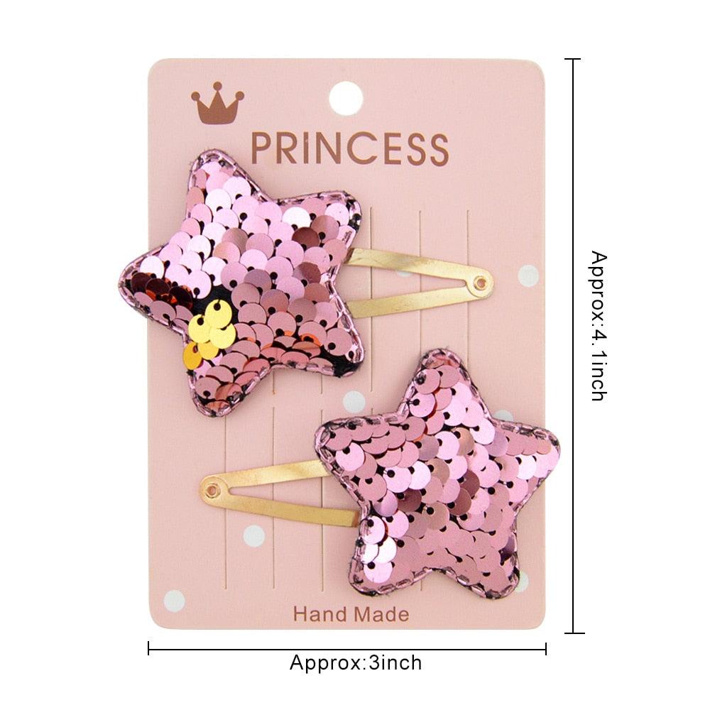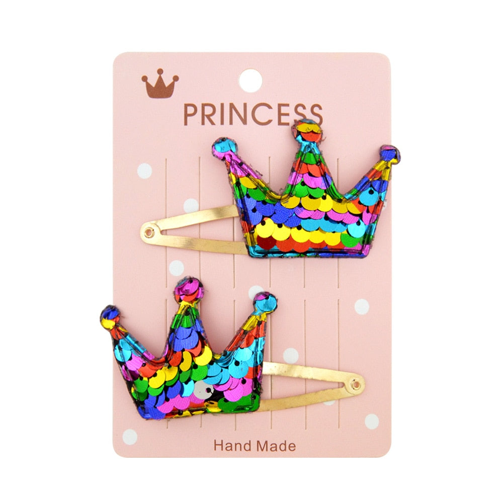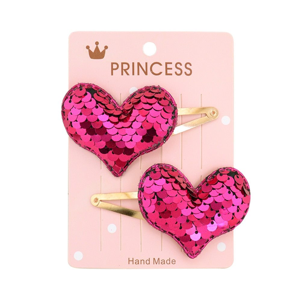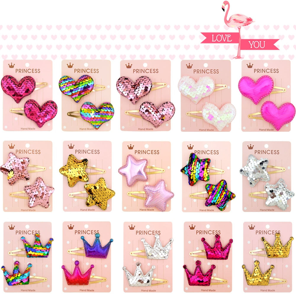 2Pcs/set Sequins Cartoon Love Heart Crown Hair Clips for Girls Handmade Boutique Hairpins Baby Clips Kids Hair Accessories 035