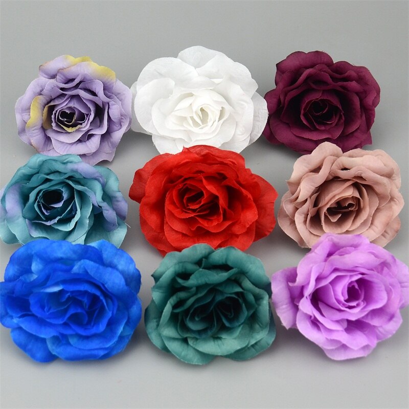 3/10pcs Large Artificial Silk Rose Flower Heads 9cm For Wedding Party Decoration DIY Scrapbook Flower Wall Craft Fake Flowers