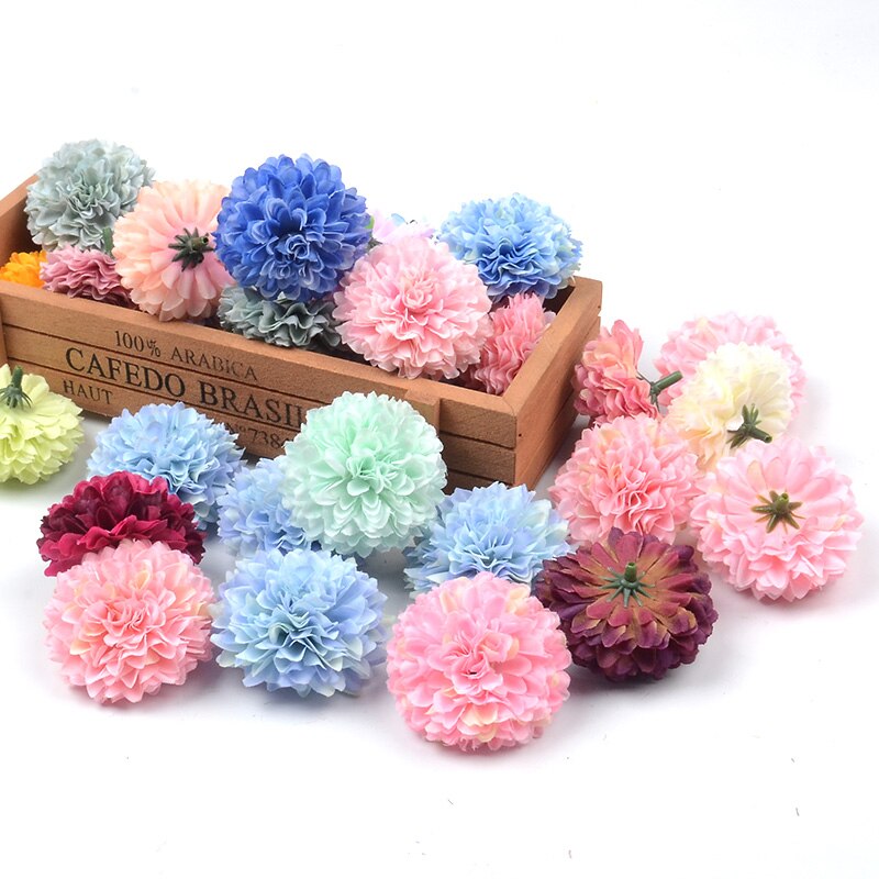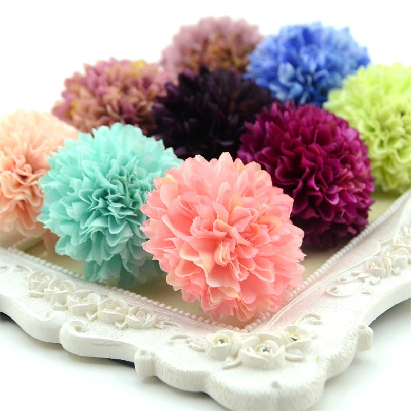 30pcs 5cm Silk Artificial Pompom Carnation Flower Head Hydrangea Wedding Home Decoration DIY Scrapbooking Craft Fake Flowers