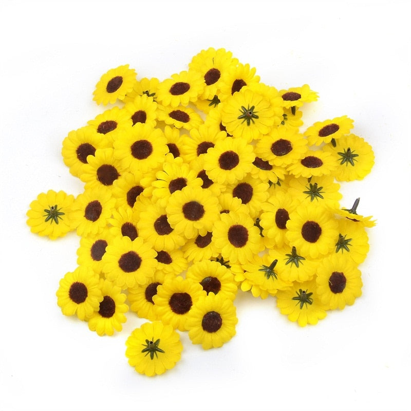30pcs Mini Silk Sunflower Artificial Daisy Flower Head For Wedding Party Decoration DIY Scrapbooking Wreath Craft  Fake Flowers