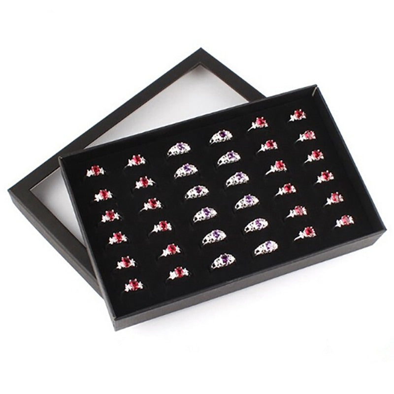 36 Slots Ring Box Tray Storage Case Earrings Jewelry Display Holder Organizer Practical Ring PVC Transparent Window Showcase