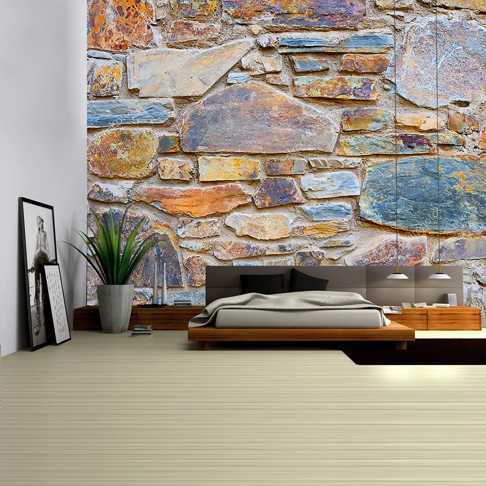 3D Colored Stone Brick Retro Tapestry Wall Hanging Bohemia Art Print Tapestry Room Home Decoration