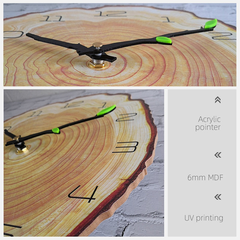3D Wood Grain Wall Clock Modern Design Art Home Decor Kitchen Clock Quartz Wall Watch Silent 12 inch