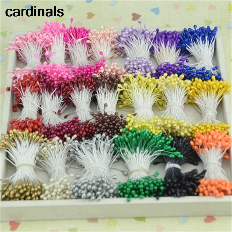 3mm 300pcs Double heads Mini Pearl Stamen Sugar Artificial Flower For Wedding Decoration DIY Scrapbooking Wreath Fake Flowers