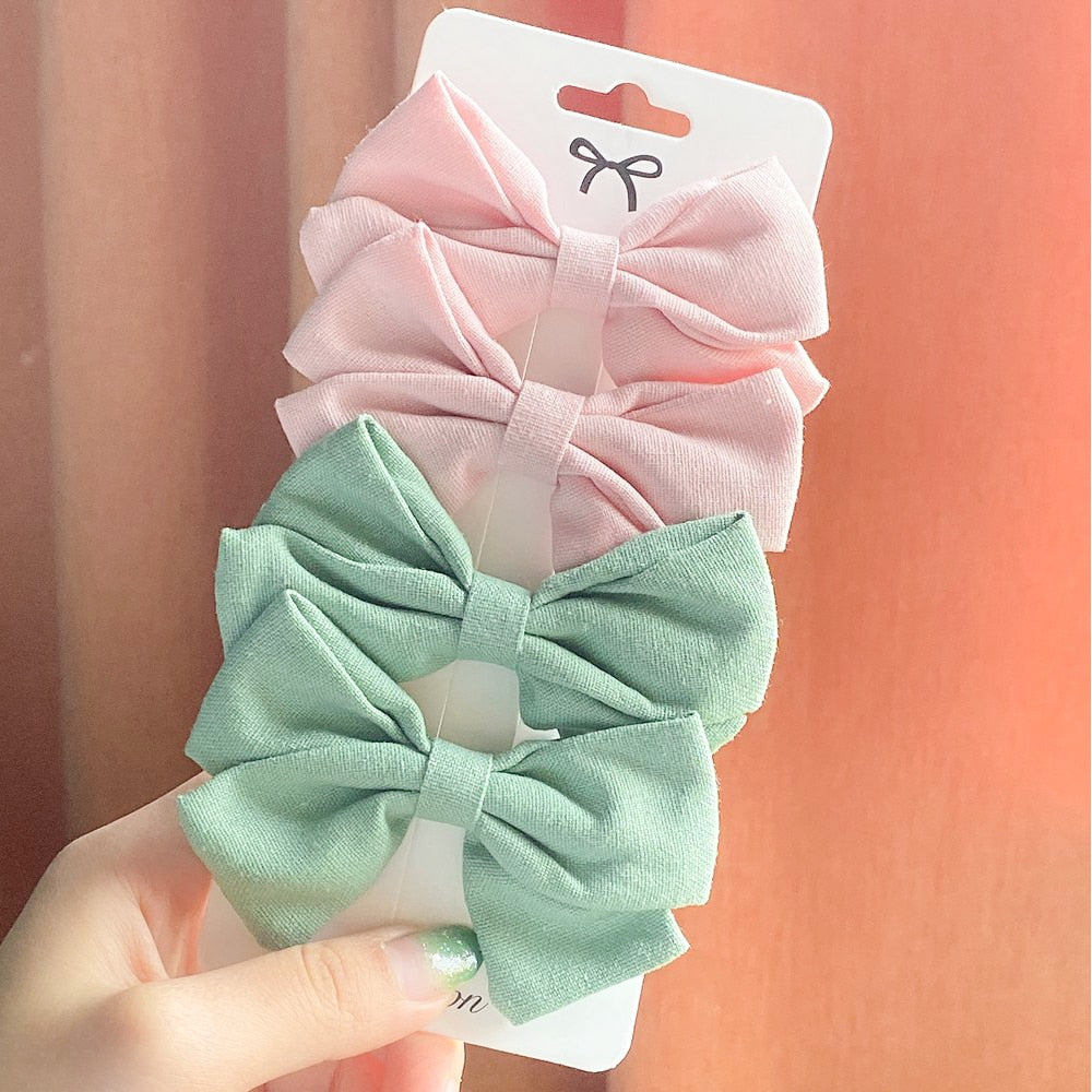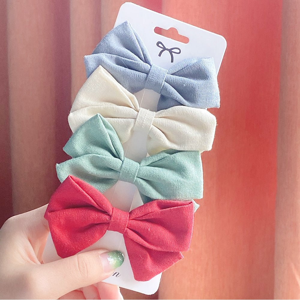 4Pcs/set Cute Solid Bowknots Hair Clips For Baby Girls Safty Boutique Hairpins Handmade Barrettes Headwear Kids Hair Accessories