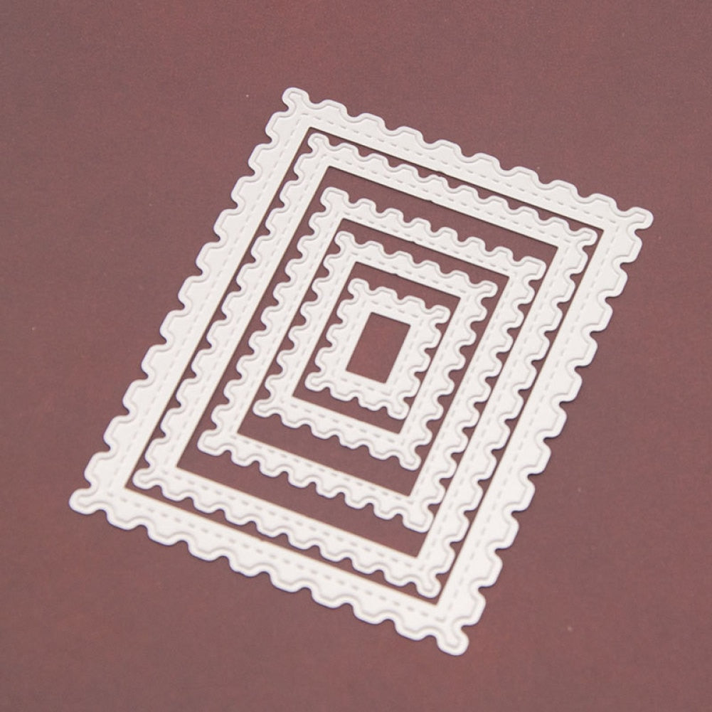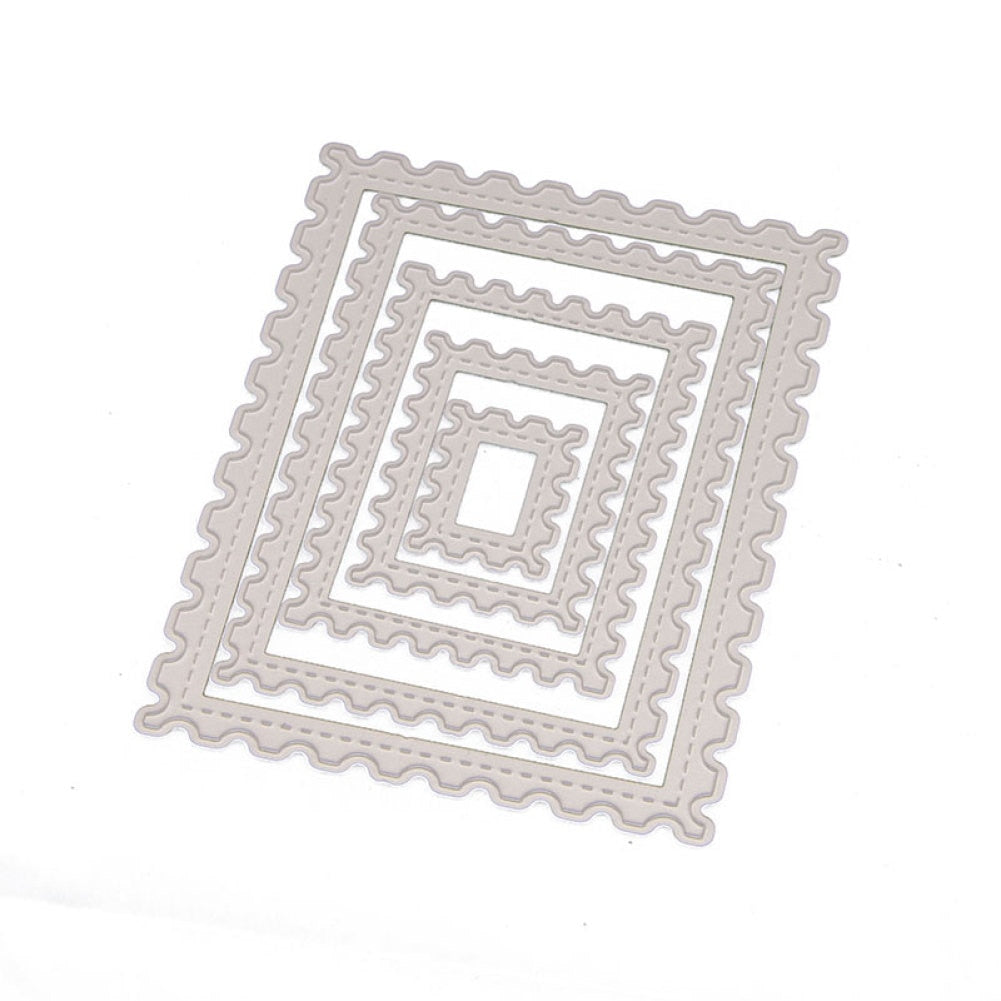 5 PCS Stitched Rectangle Scallop Frame Metal Cutting Dies Scrapbooking Steel Craft Dies Cuts Embossing Paper Card Make Stencil