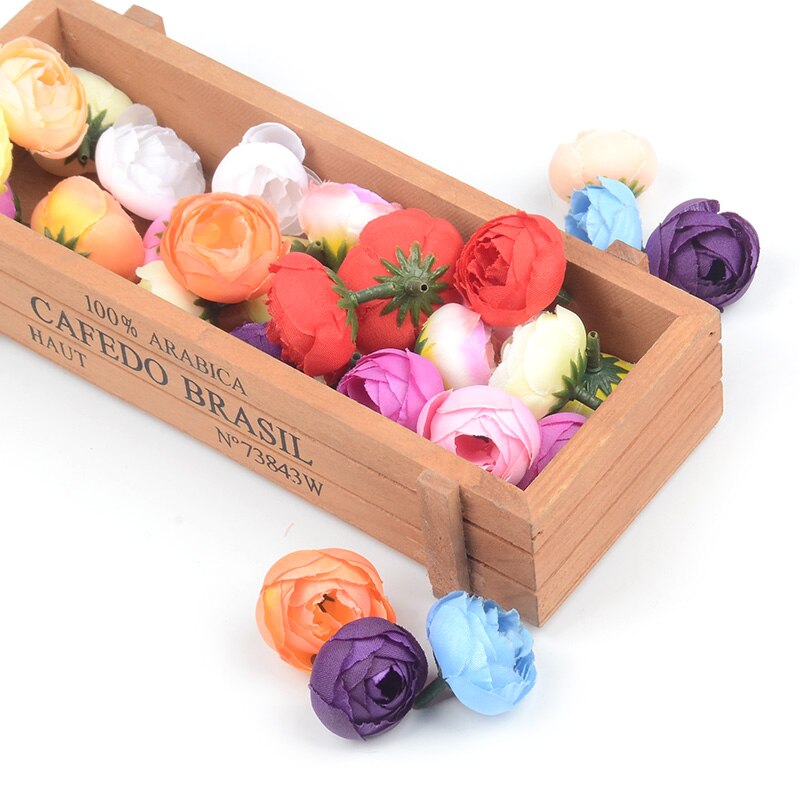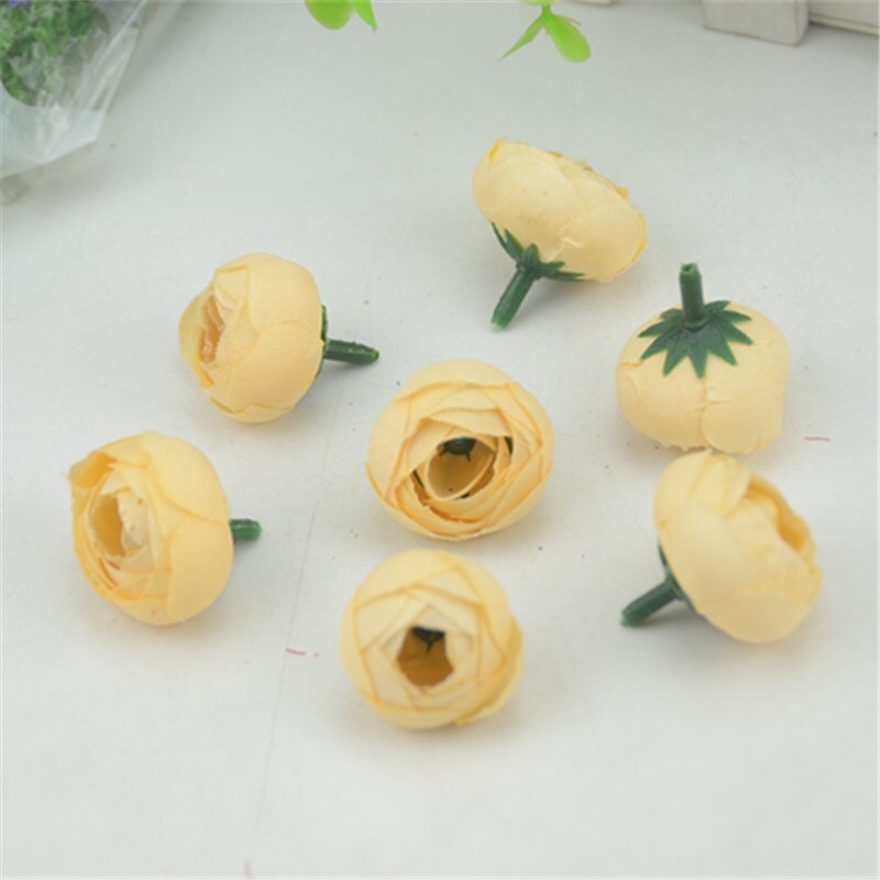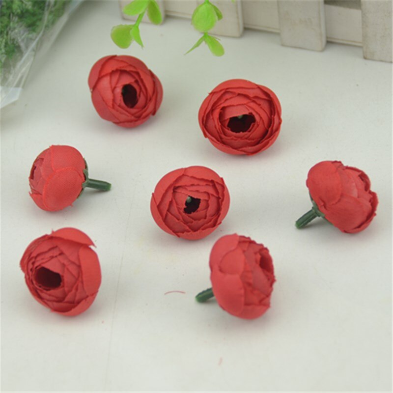 50pcs 2.5cm Artificial Small Silk Tea Buds Flower Heads For Home Wedding Decoration DIY Handmade Simulation Fake Flowers