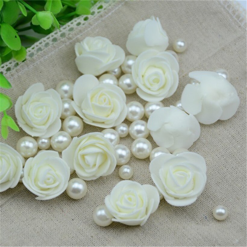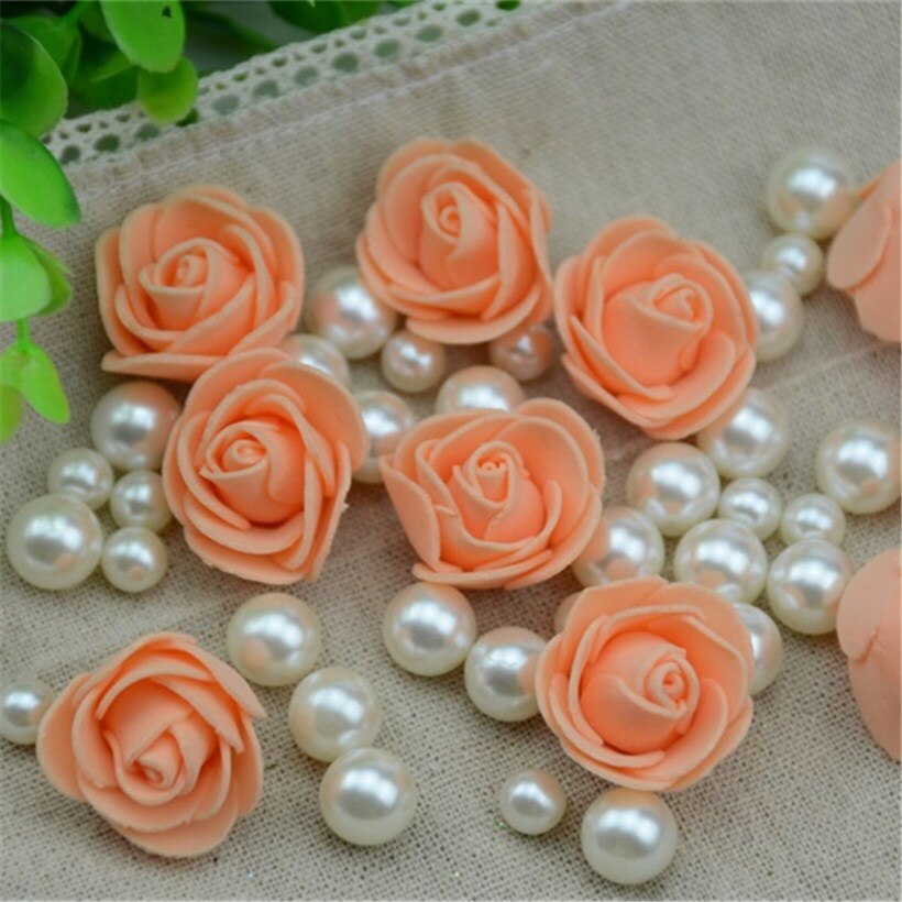 50PCS/Lot Artificial Mini PE Foam Rose Flower Head Handmade DIY Wedding Home Decoration DIY Scrapbooking Fake Flower Kiss Ball