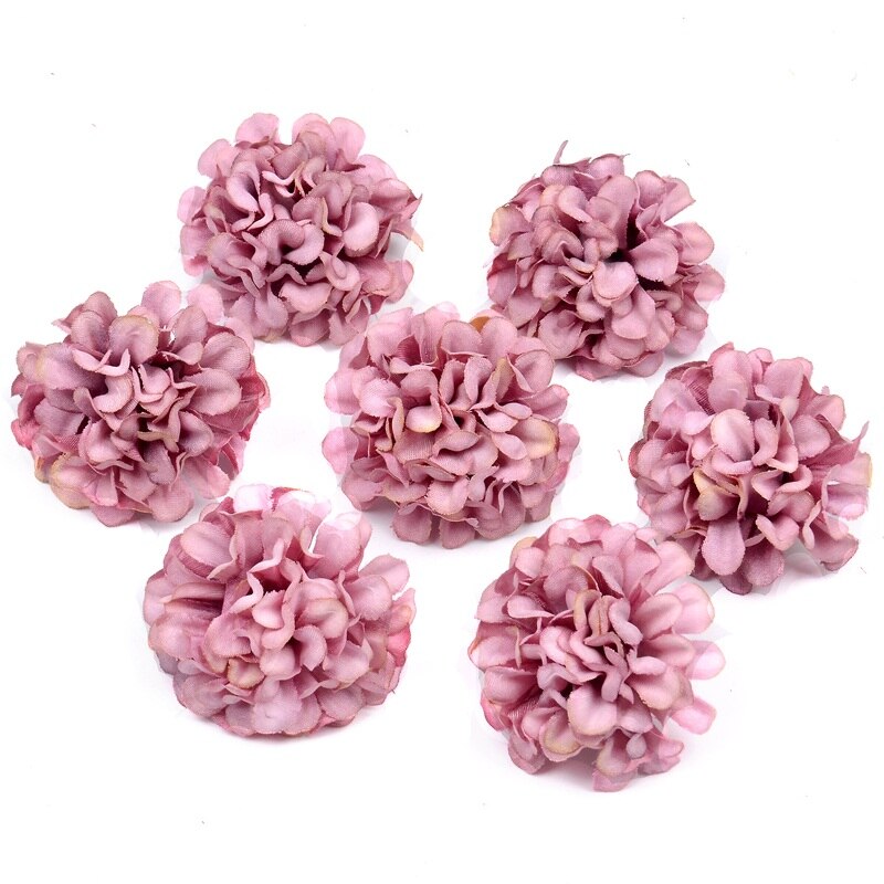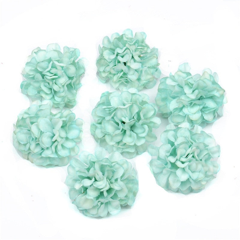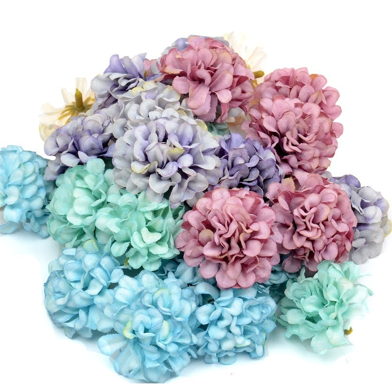 50pcs/lot Mini Artificial Flower Silk Hydrangea Head For Wedding Decoration DIY Wreath Scrapbooking Craft Cheap Fake Flowers