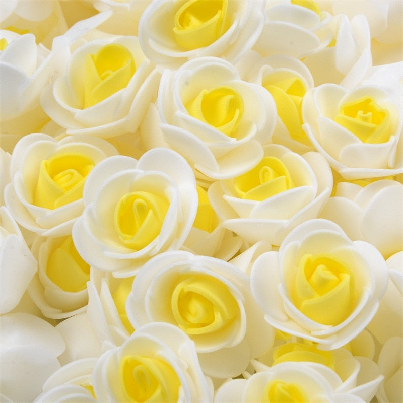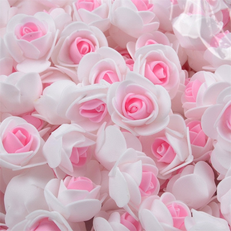 50PCS PE Foam Artificial Rose Flower Head Handmade DIY Wedding Home Decoration DIY Scrapbooking Double color Fake Flowers Craft