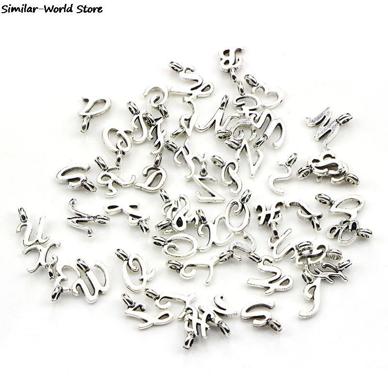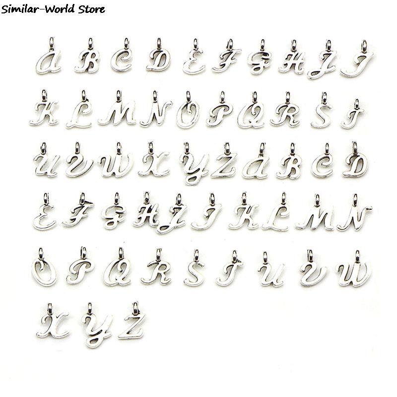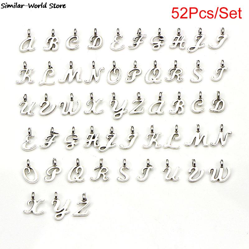 52pcs DIY Jewelry Charms Alphabet A-Z Letters Antique Silver Color Pendants Making DIY Handmade Tibetan Finding Jewelry