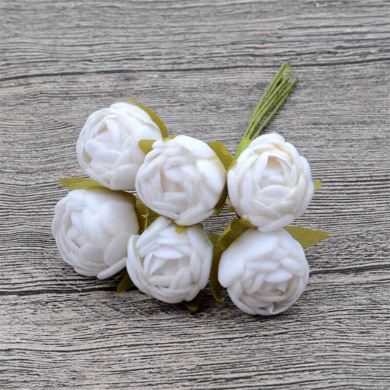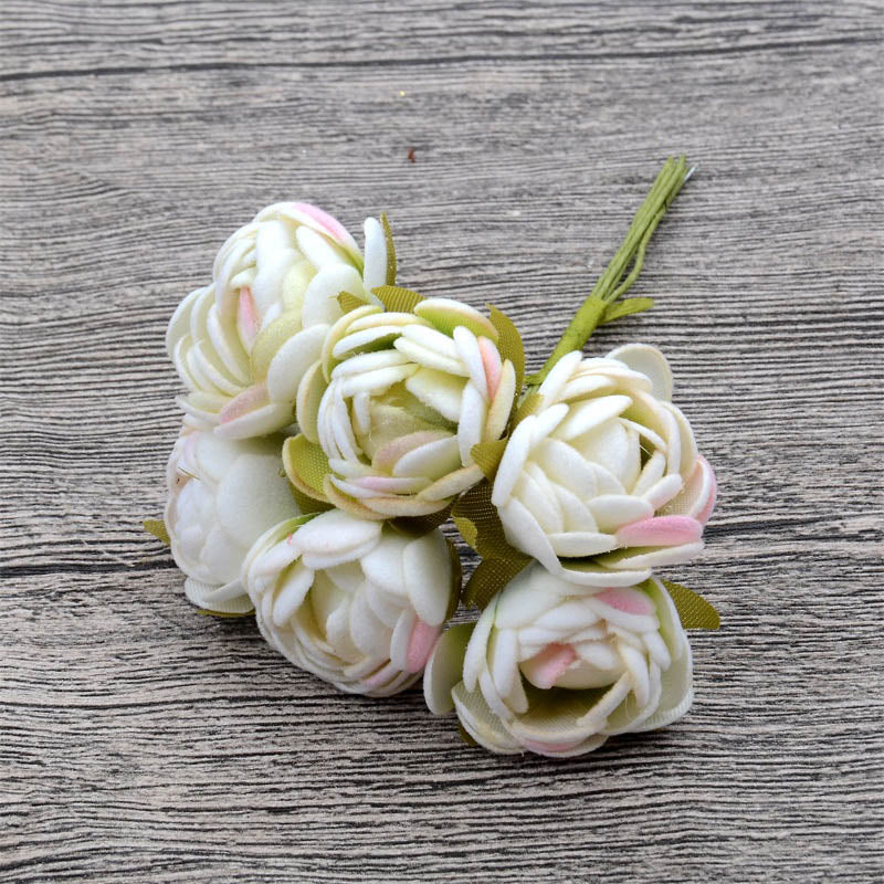 60pcs Mini Silk Tea Rose Bud Artificial Rose Flower Bouquet Scrapbooking Wedding Party Decoration DIY Handmade Fake Flower Craft