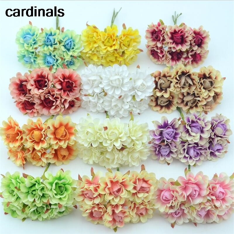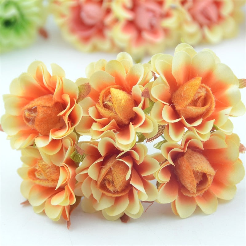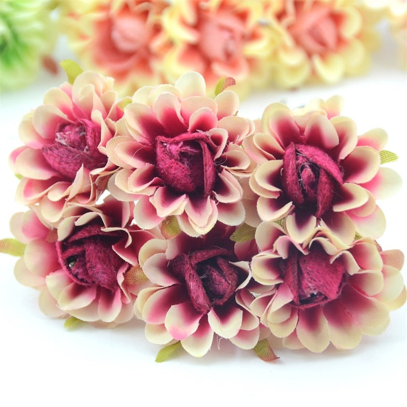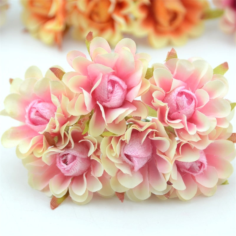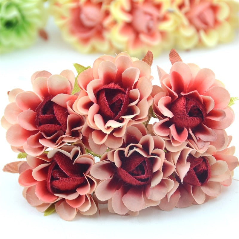6pcs 4cm Silk Rose Artificial Poppy Flower Bouquet For Wedding Party Decoration Scrapbooking DIY Handmade Wreath Fake Flowers
