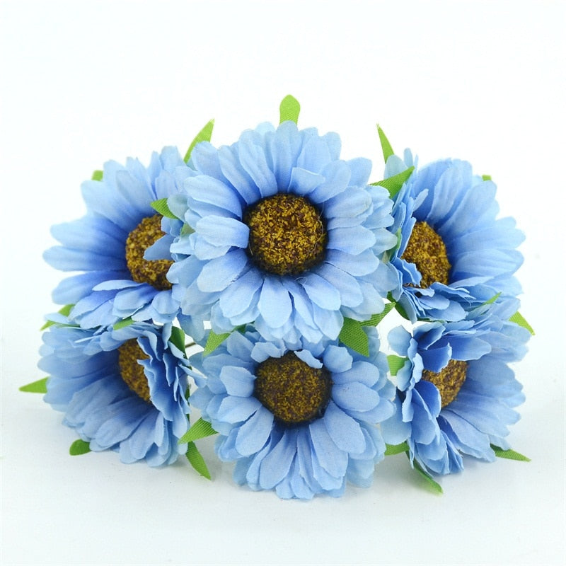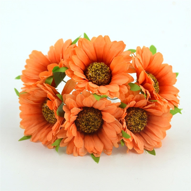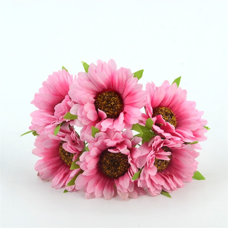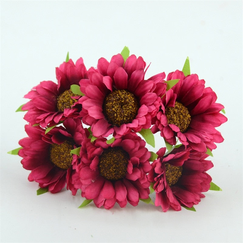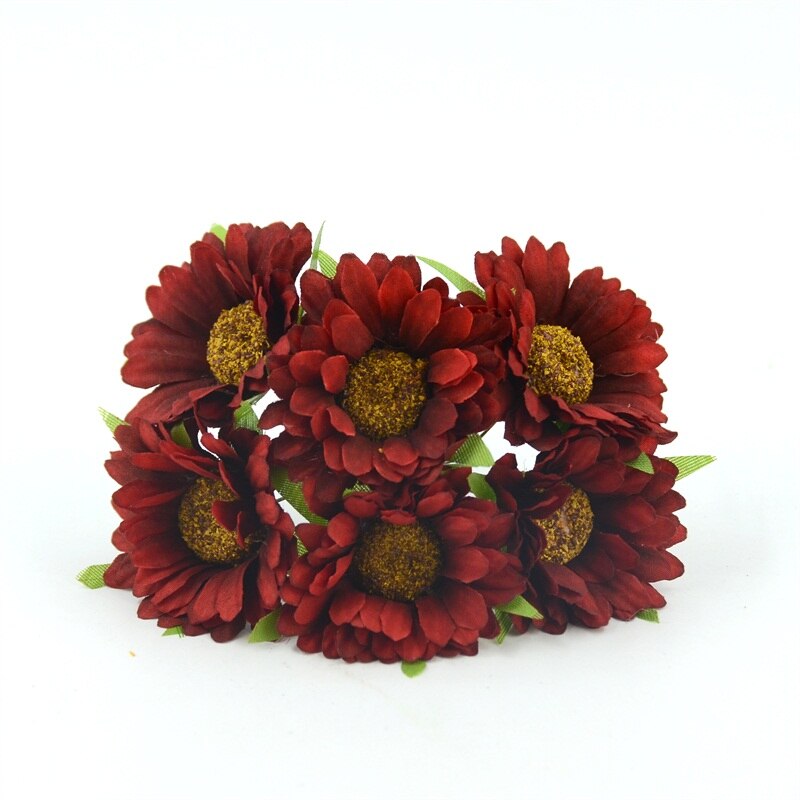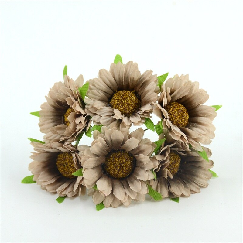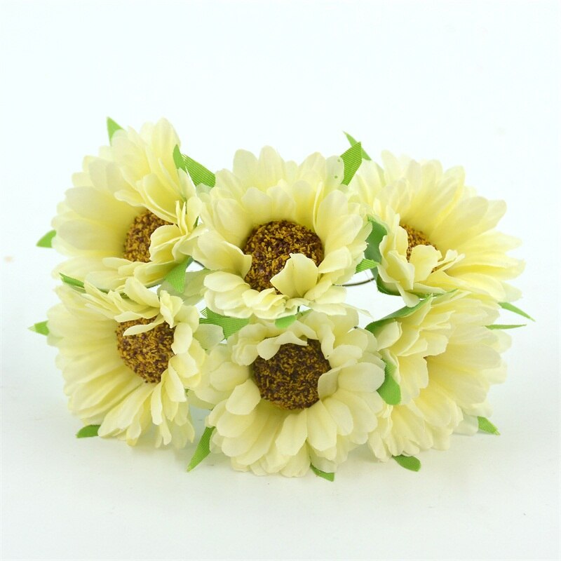 6pcs Cheap Daisy Artificial Flower Silk Sunflower Bouquet For Wedding Decoration Scrapbooking DIY Wreaths Craft Fake Flowers