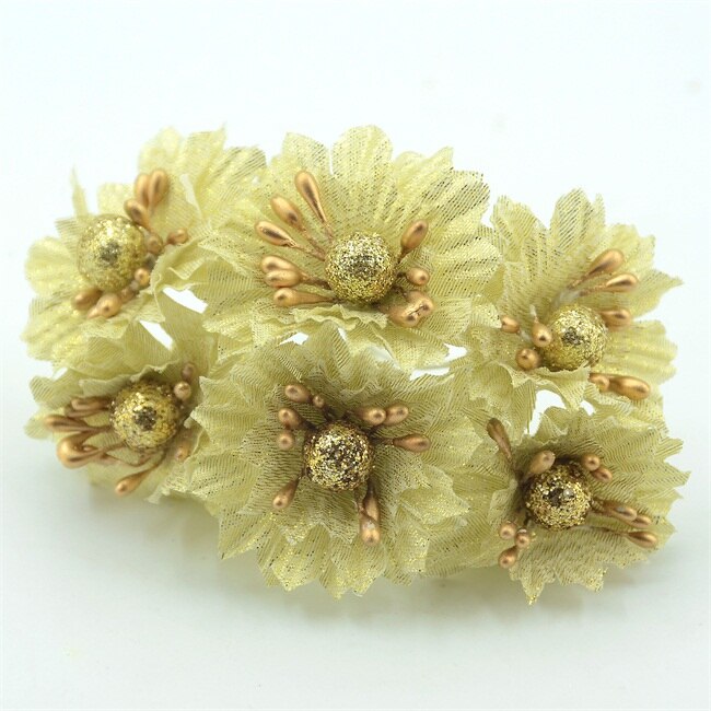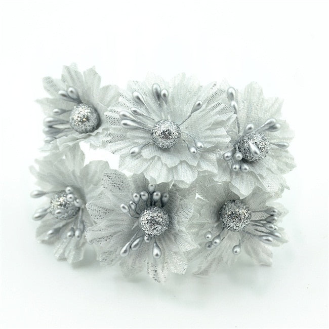 6pcs Golden Silver Glitter Artificial silk flower bouquet for Wedding Decoration Scrapbook DIY handcarft Fake flowers