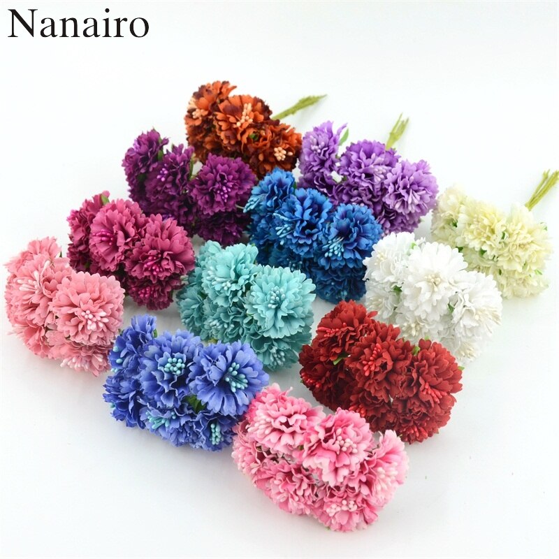 6pcs/lot Mini Artificial Silk Rose Flower Bouquet For Wedding Home Decoration DIY Handmade Crafts Accessories Fake Flowers