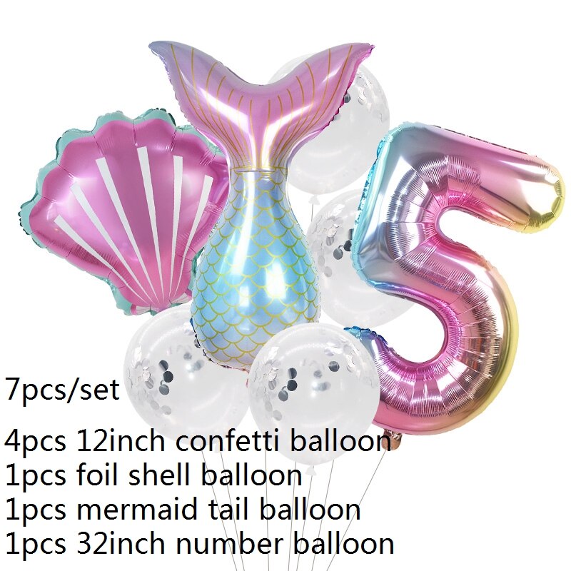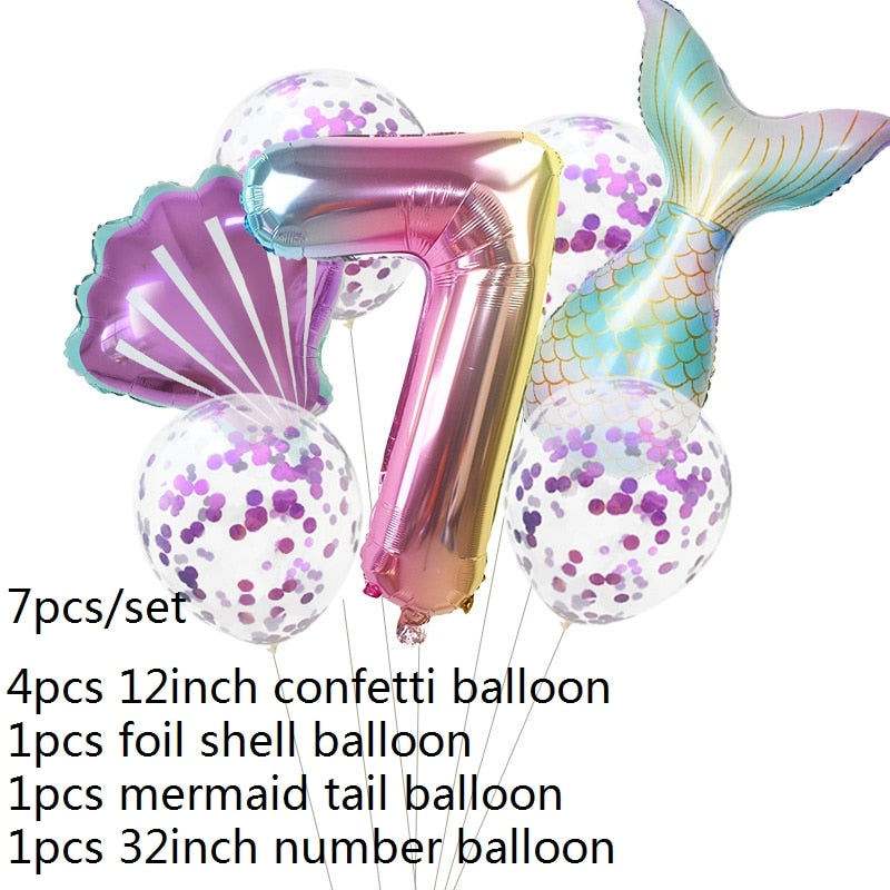 7pcs Mermaid Party Balloons 0 1 2 3 4 5 6 7 8 9 Number Foil Balloon Kids Birthday Party Decorations Baby Shower Helium Globos