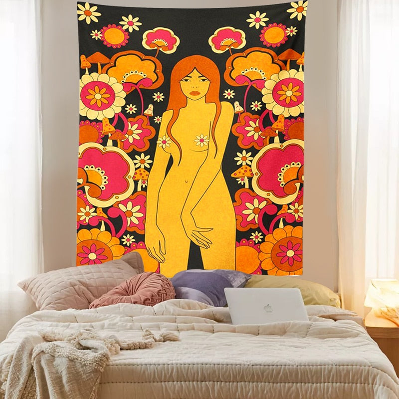 80S Vintage Wall Tapestry Hanging Decor Vintage 80S Girls Dorm Wall Art Decor Home Floral Art Carpet Retro Wall Hanging Decor