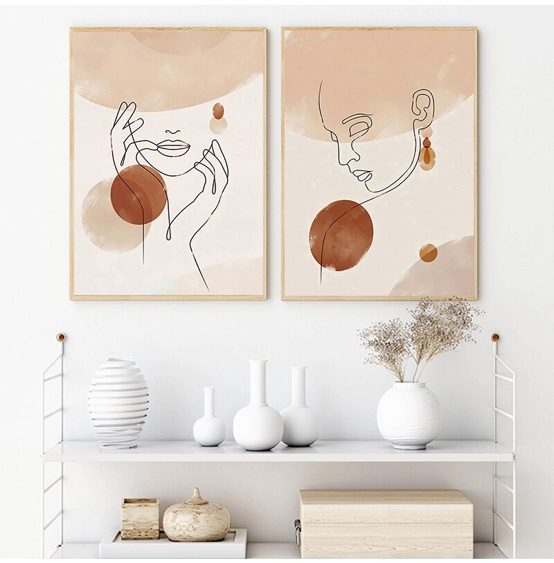 Abstract Woman Face Line Drawing Print Boho Wall Decor Terracotta Minimalist Poster Wall Art Canvas Painting Pictures Home Decor