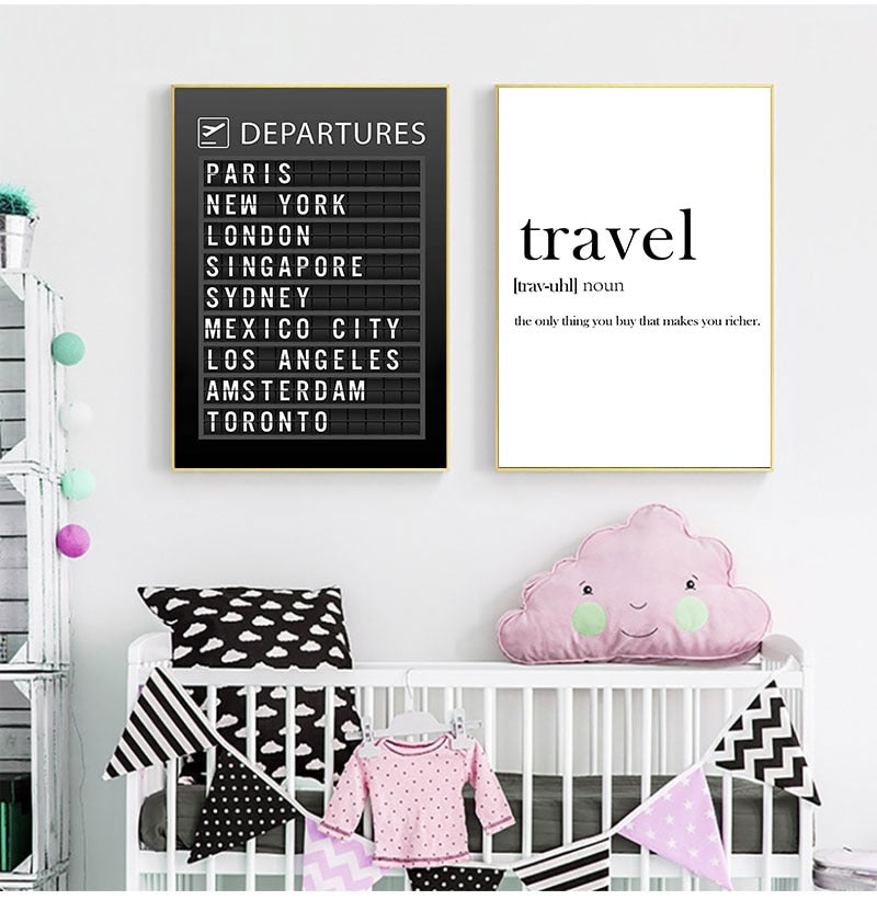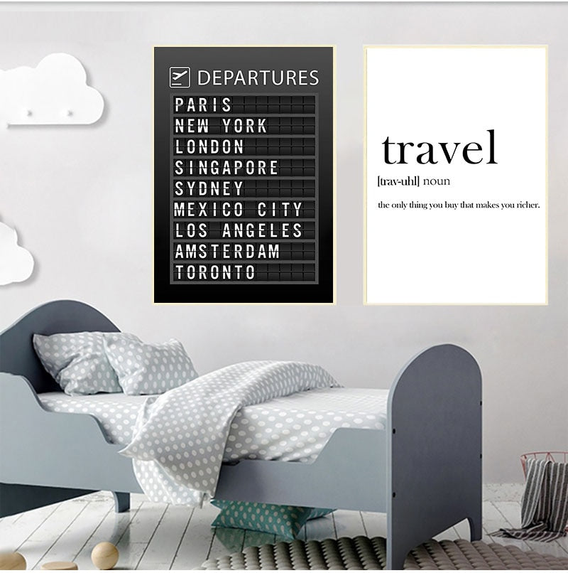 Airport Board Destination Poster Canvas Painting Wall Art Honeymoon Travel Quotes Pictures Home Decoration(Accept Customization)