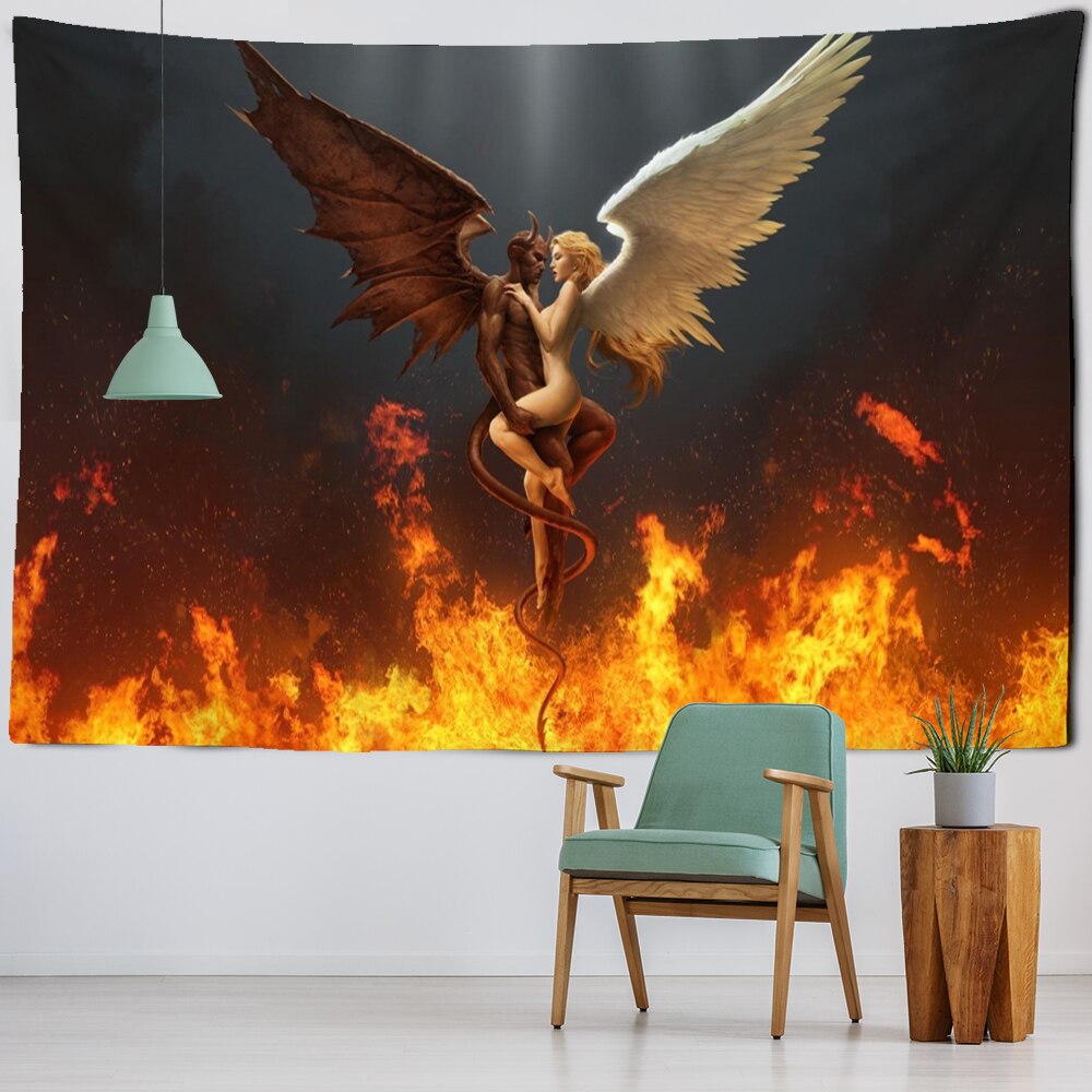 Angel Devil Tapestry Hell Wall Hanging Witchcraft Wall Tapestry Hippie Wall Carpets Dorm Decor Psychedelic Halloween Tapestry