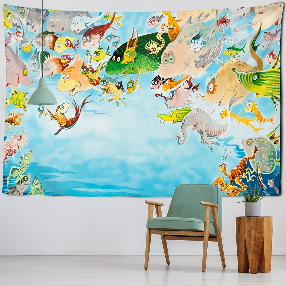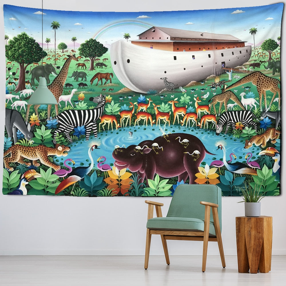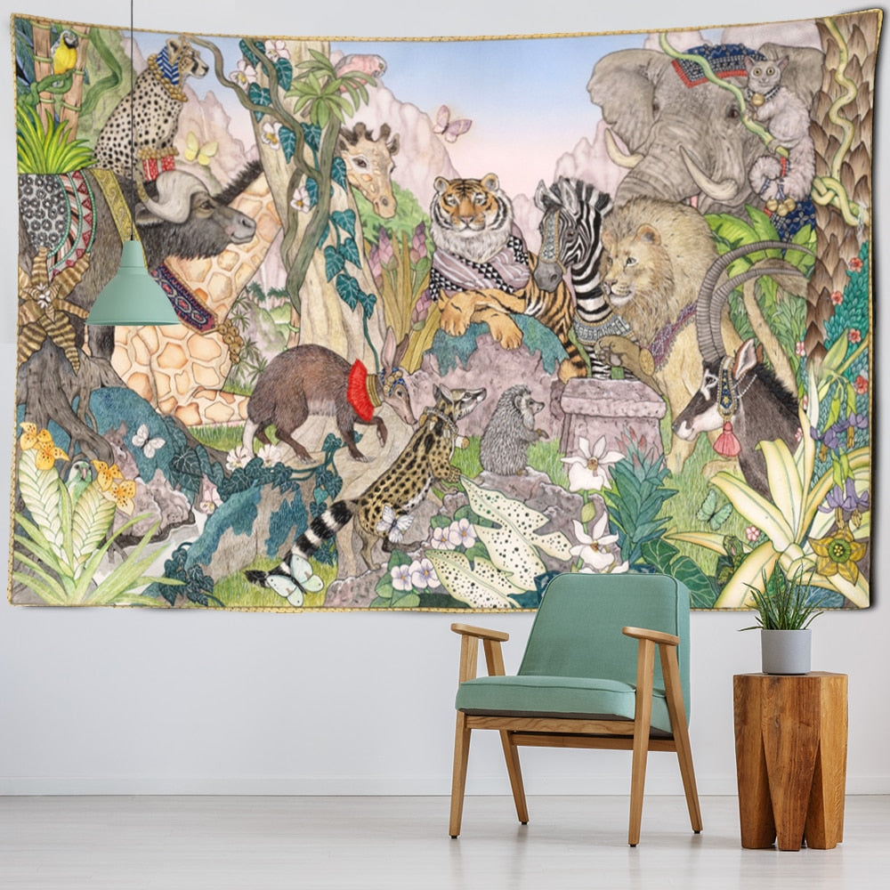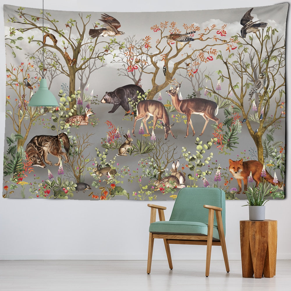Animal Forest Illustration Tapestry Wall Hanging Bohemian Style Art Witchcraft Kawaii Cartoon Dormitory Home Decor