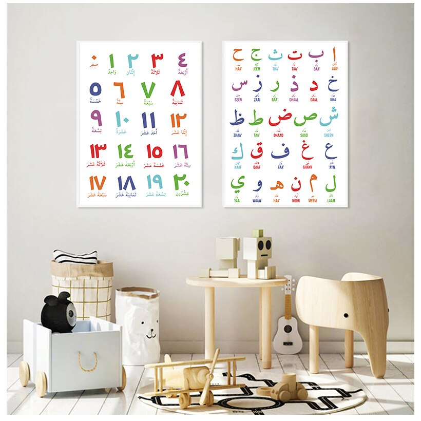 Arabic Islamic Wall Art Canvas Painting Arabic Letters Alphabets Numerals Poster Prints Nursery Kids Room Wall Art Decor