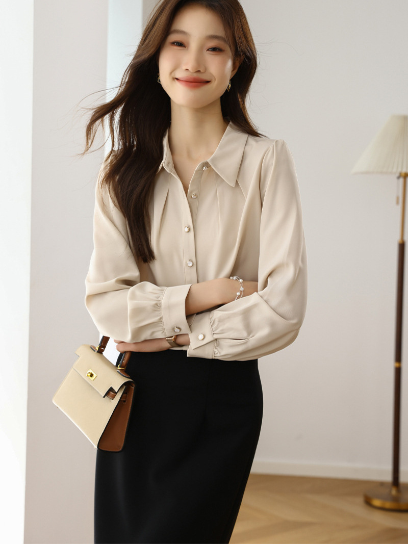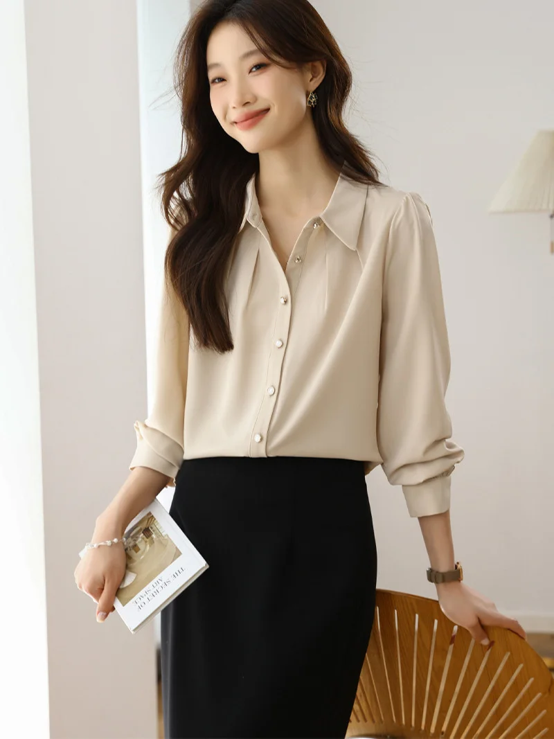 Athvotar Athvotar 2025 New Solid Color Repair Body Clothes Thin Fashion Shirt Elegant Commute OL Chiffon Shirt