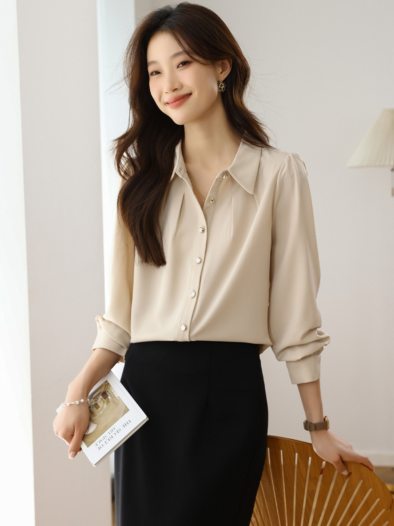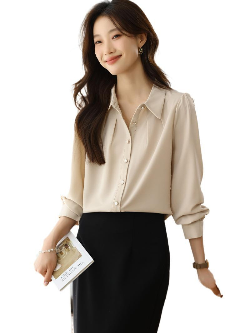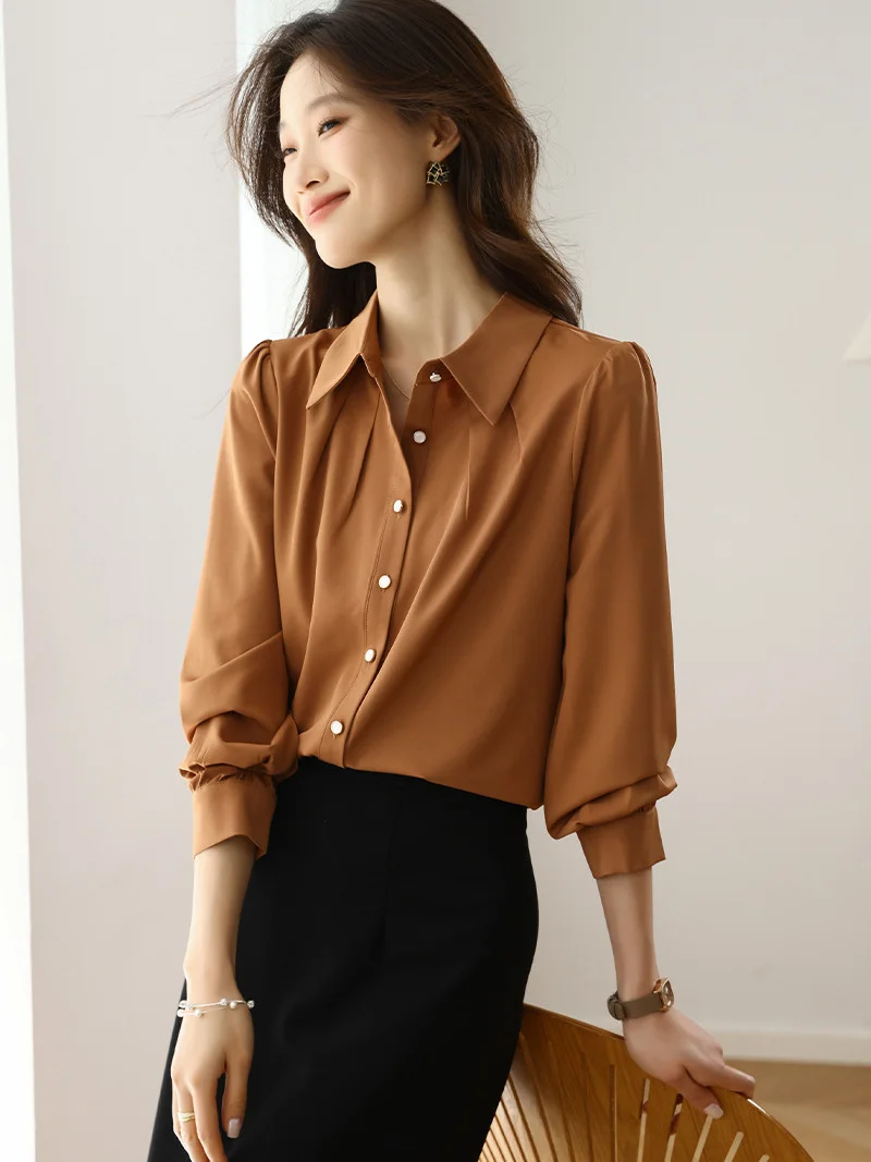 Athvotar Athvotar 2025 New Solid Color Shirt Slim Fashion Shirt Elegant Temperament Commuting OL Chiffon Shirt